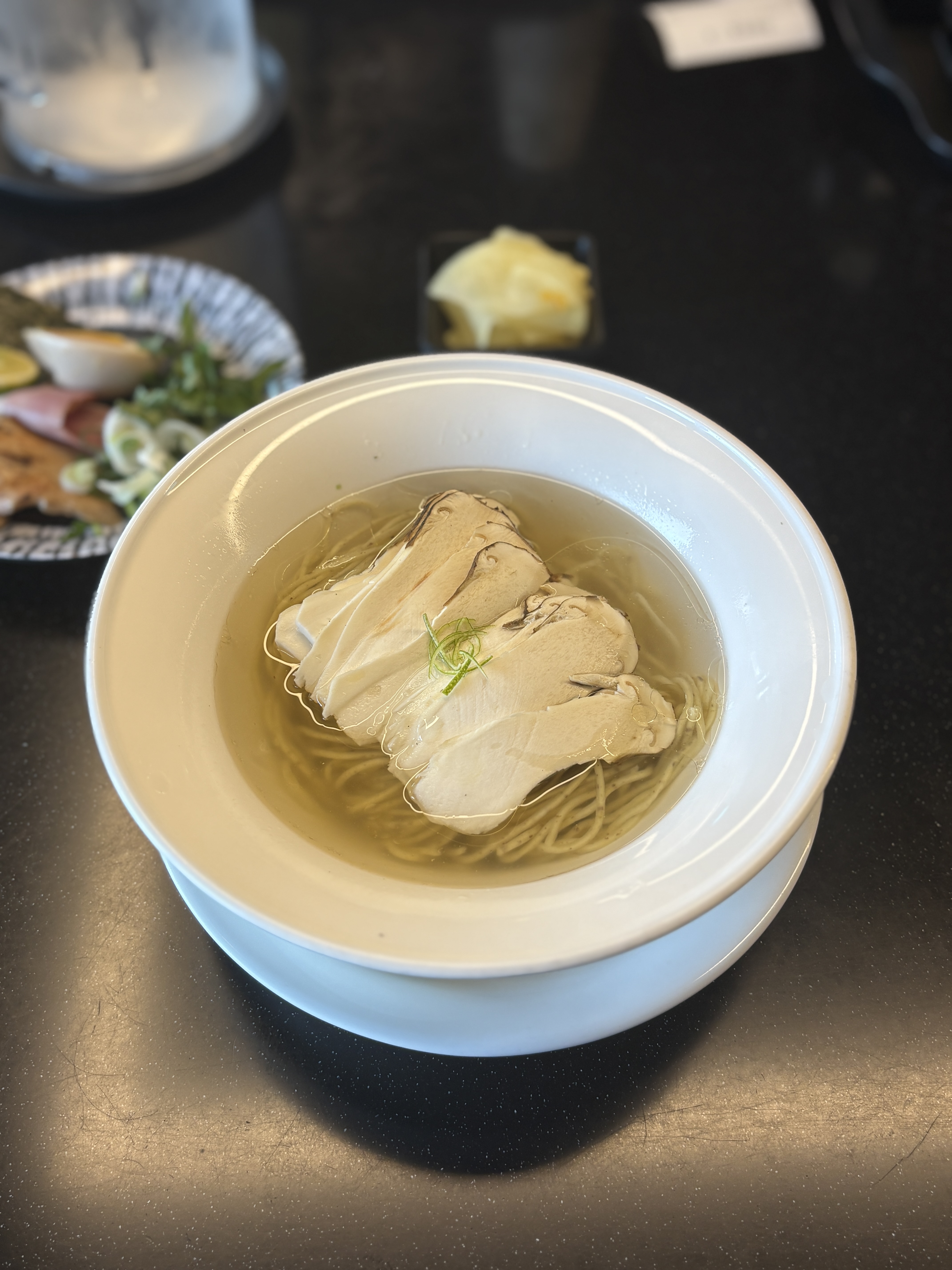 호탕하게 썰어낸 송이를 올린 라멘은 오리와 닭을 이용한 청탕 스프가 베이스가됩니다. 기름층도 두껍지 않으면서도 깔끔한 스프로 메인 식재료인 송이버섯의 향을 최대한 살리려는 느낌을 받았습니다. 같이 나오는 고명들도 다른 접시에 따로 담아주셔서 송이의 맛을 온전히 느끼게 해주시려는 배려가 돋보였습니다. 2만원 후반대의 비싼 가격이었지만 송이버섯을 좋아하시는 분들과 청탕의 깔끔한 맛을 좋아하는 라멘 애호가 분들에게는 놓치면 정말 아쉬운 메뉴가 아닐까 싶습니다.