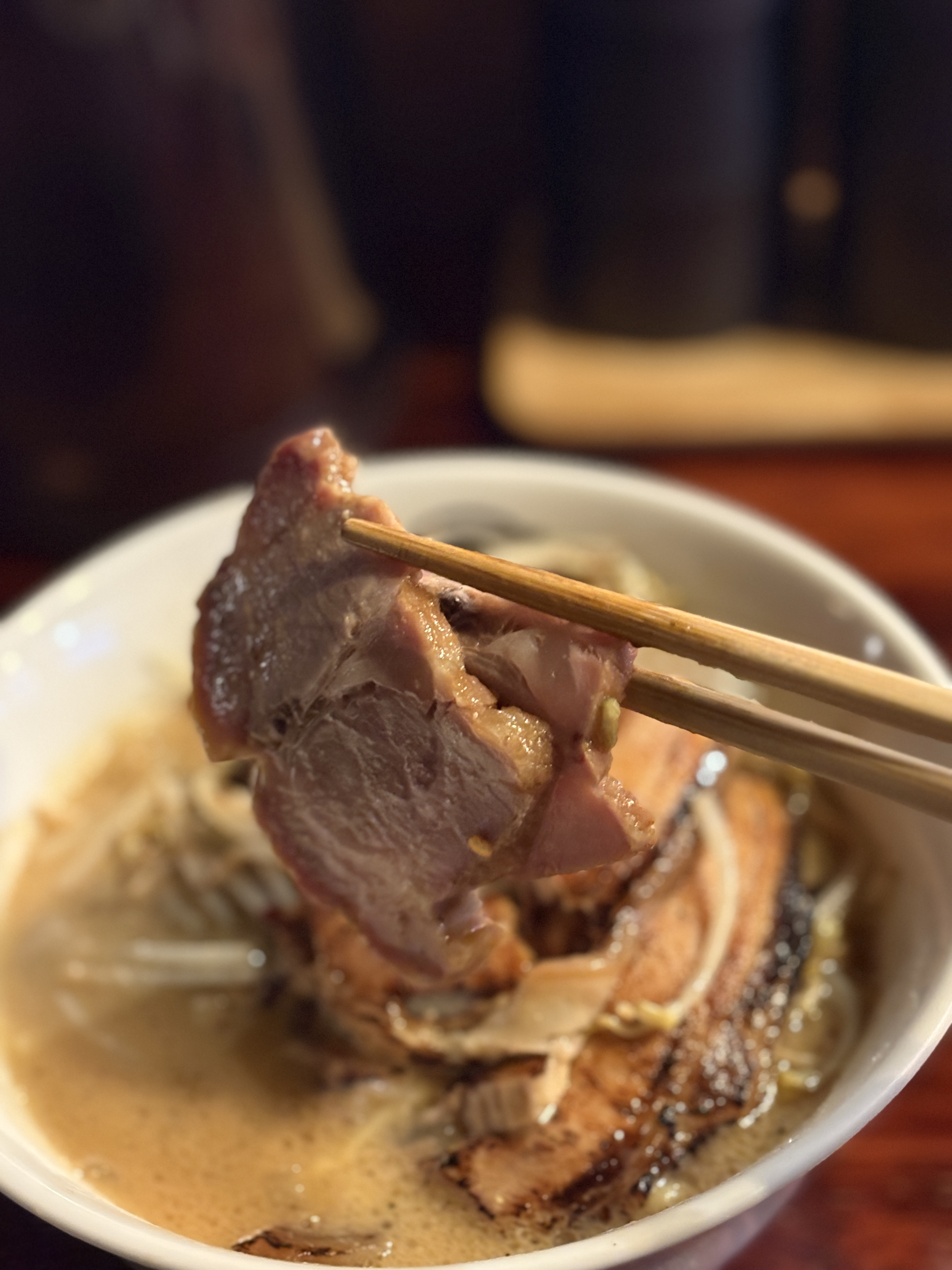 요새 다양한 종류로 차슈를 조리해서 올리는 라멘들이 많지만 역시 정통 미소라멘은 토치를 직빵으로 맞은 구리빛 피부의 삼겹(오겹) 차슈죠. 압력솥을 사용하신건지 굉장히 부드러워서 사진 좀 찍으려고 젓가락질을 했는데 결대로 갈라져버립니다 ㅋㅋ 불향 가득하면서 온도감 좋고 부드러운 지방많은 돼지고기 차슈. 완전 사랑합니다. 왜 다른 분들이 차슈밥 먹으라는지 알 것 같은 순간이었어요.