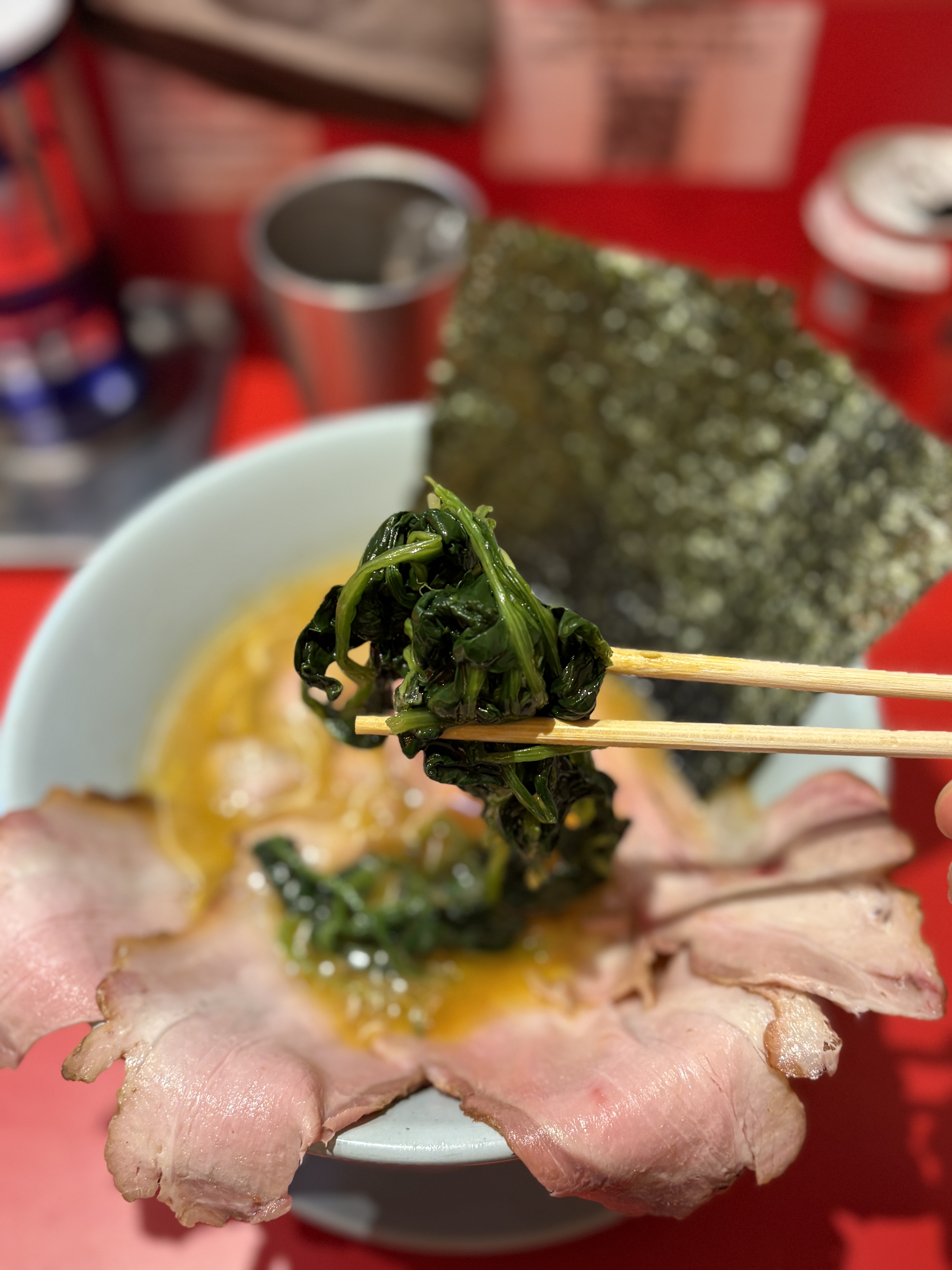 차슈는 사실 제가 이에케라멘의 훈제 차슈자체가 제 스타일과는 좀 안맞기는 합니다만 부타노맥스의 차슈는 얇게 슬라이스해서 내주시는 편이라서 개인적인 취향과는 거리가 있었어요. 훈제차슈인건 좋은데 좀 더 두께감이 있었으면 좋겠습니다. 물론 그렇게되면 차슈가 자칫 질겨질 수도 있기 때문에 어려울 수 있지만..