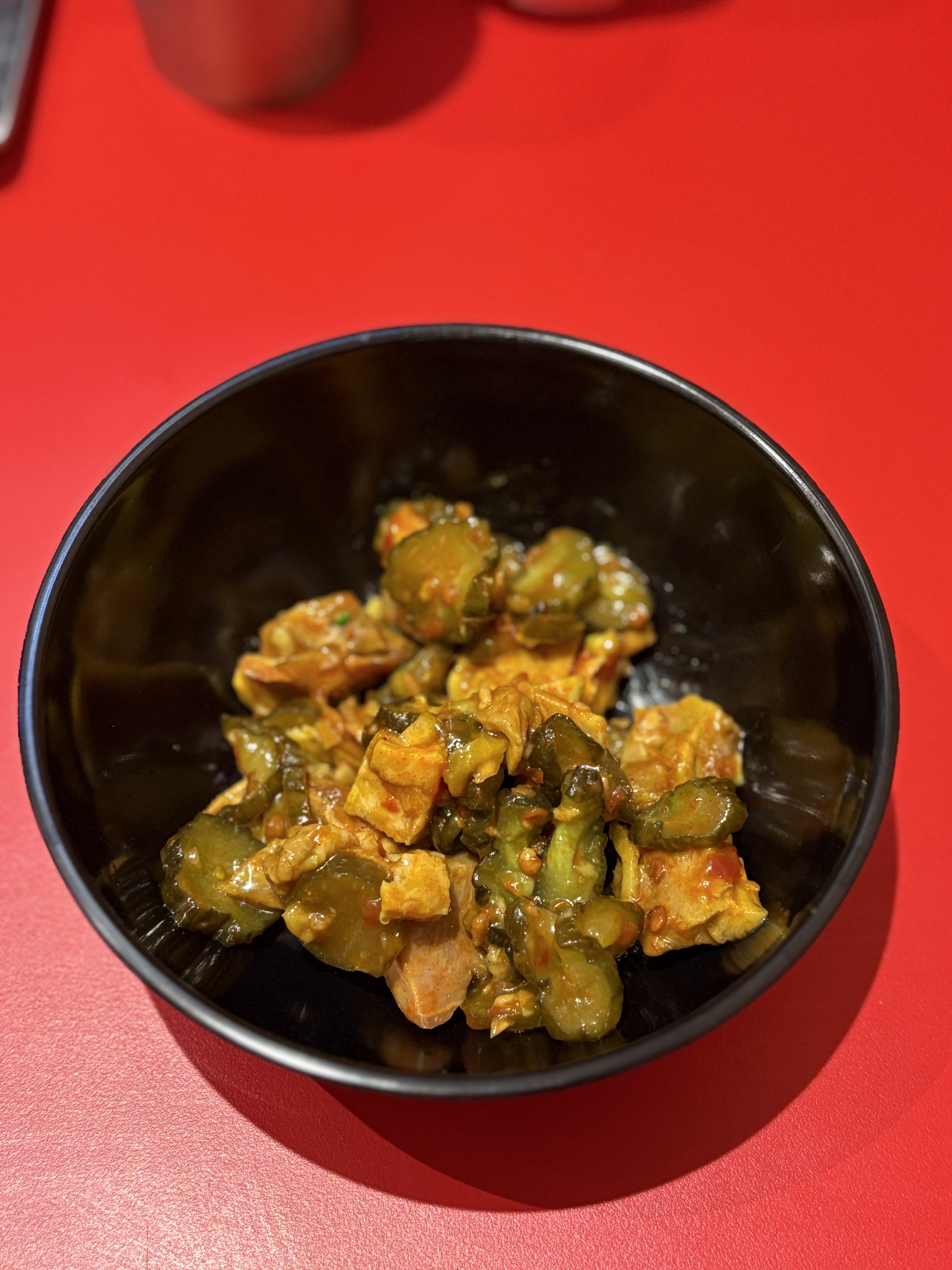 무료 반찬인데 이렇게 깍둑차슈가 푸짐하게 들어있습니다. 두반장이랑 꼬들한 오이와 조화가 너무 좋았고 이거랑 밥만 있어도 한끼는 먹겠더라는.. 다만 무료라서 좀 양심없이 퍼가는 사람 (의도한거 아님) 이 많으면 소진되기도 해서 이점은 유념하셔야 할듯해요.