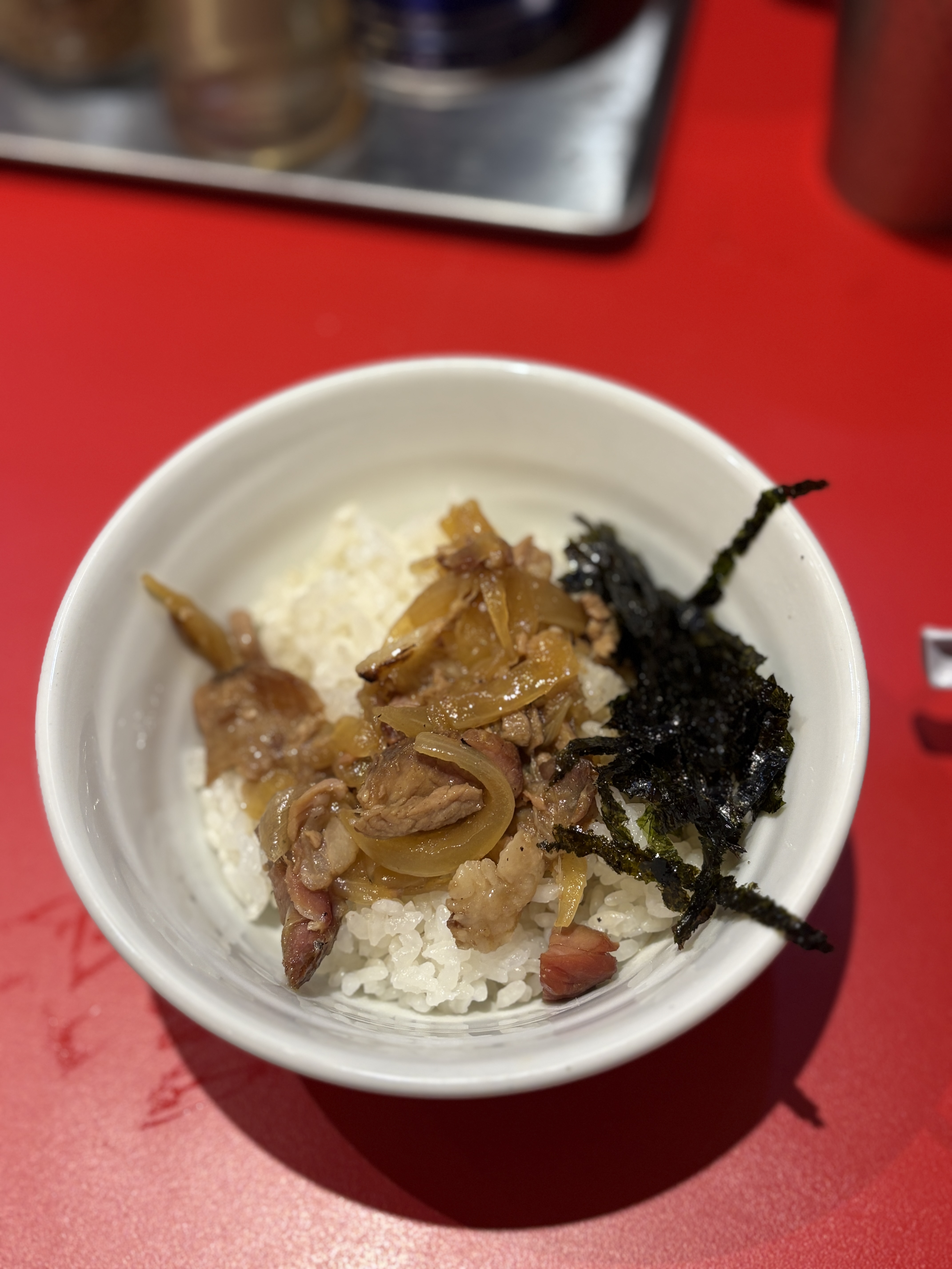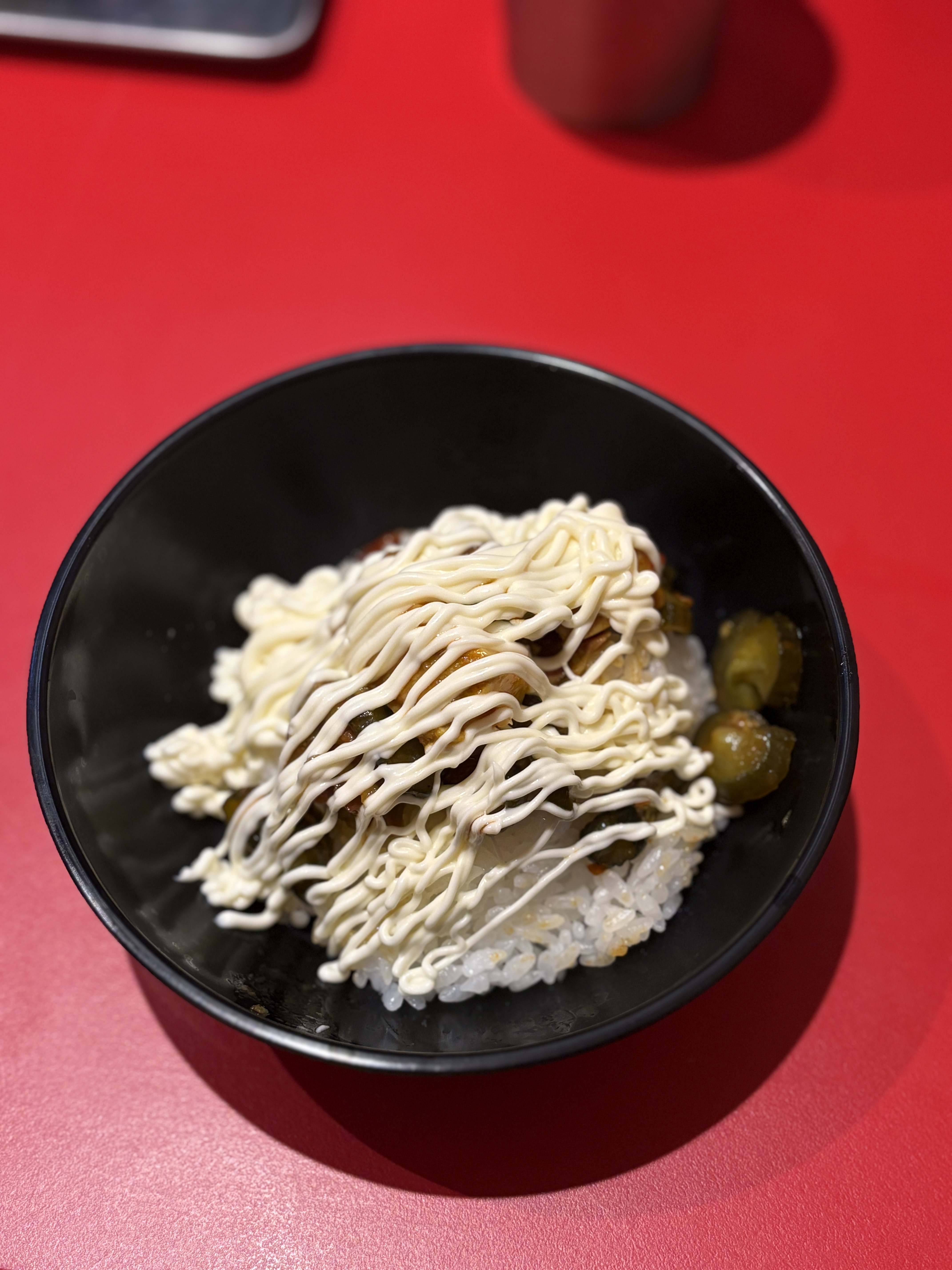 다음 방문에 촬영한 컷인데요, 셀프바에 있는 무료밥에 고추마늘장아찌 등 무료 반찬을 소량씩 넣고 마요네즈를 뿌려서 라멘 스프를 넣어서 비벼먹으면 자극적인 감칠맛의 대향연입니다. 물론 칼로리는 높겠지만.. 이에케도 그렇고 지로케도 그렇고 가끔 일하다가 스트레스 받으면 이런 맛이 땡길 때가 있더라구요..