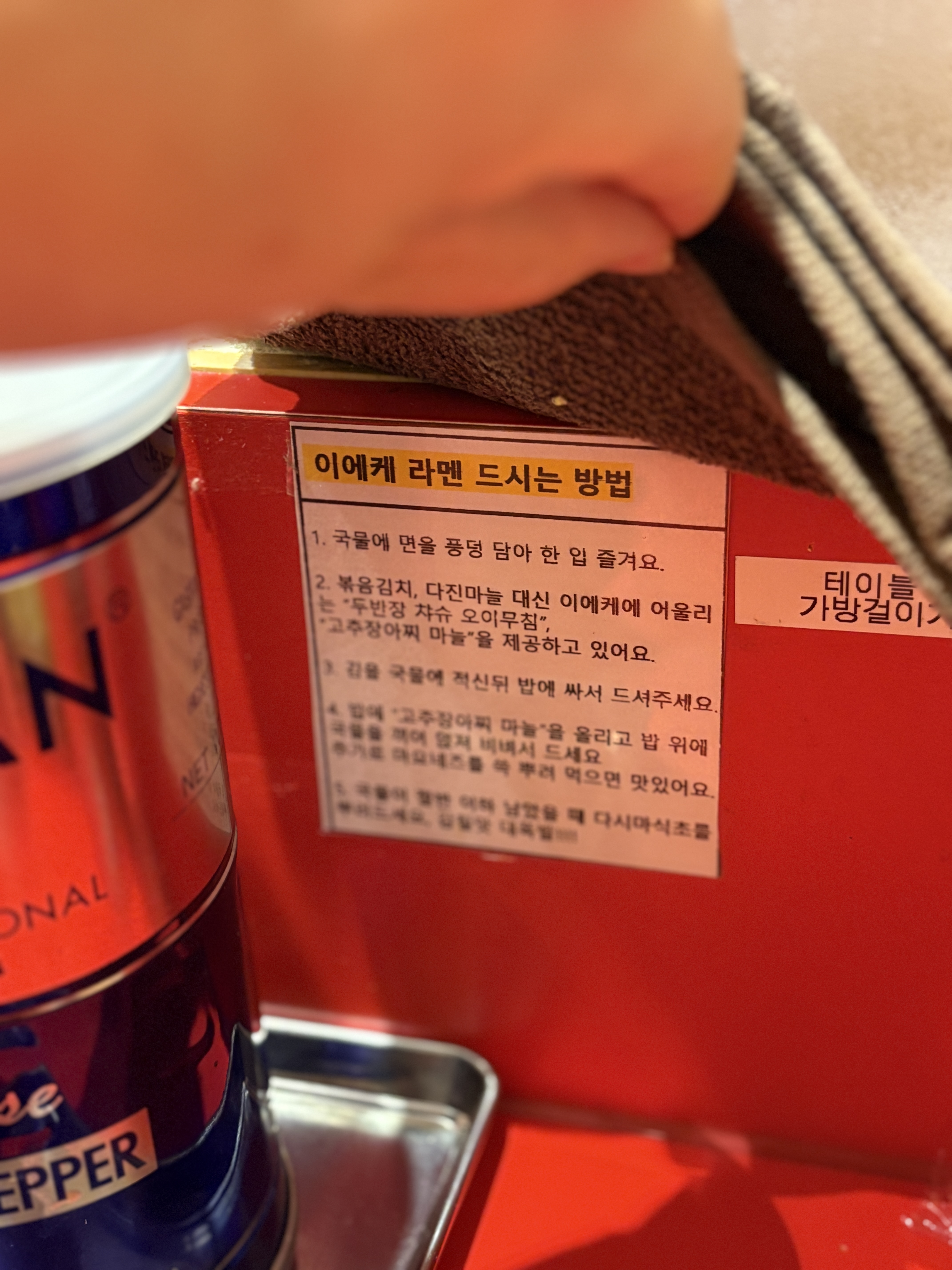 자리마다 비치된 안내판도 이에케라멘 시작과 함께 변경이 되었습니다. 위에 설명드린대로 이에케 라멘을 처음 드시는 분들을 위해서 좋은 정보인 것 같습니다. 이전에 제공한 볶음김치도 좋았지만 새로 선보이신 '두반장 차슈 오이무침'은 라멘과 너무 궁합이 좋았고, '고추장아찌 마늘'은 마요네즈랑 함께 밥이랑 비벼먹기 너무 좋은 밥도둑이었어요.