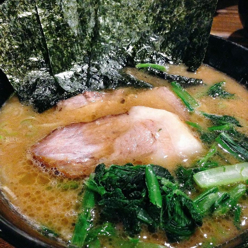 그렇다면 이에케라멘이 대체 어떤 라멘이길래 이렇게 독자적인 계통을 만들 정도로 센세이션을 일으켰을까요? 사실 이에케 라멘의 구성을 보면 돈코츠 쇼유 라멘의 서브타입이라고 할 수 있습니다. 농후하게 뽑아낸 돈코츠 쇼유 스프 위에 두꺼운 닭기름인 치유를 얹어내구요, 면도 굵은 면으로 식감에 차별점을 둡니다. 치지레면을 많이 사용하구있구요. 토핑도 특이하게 다른 라멘이서 잘 보이지 않는 시금치를 데쳐서 올려줍니다. 차슈 또한 훈제한 차슈를 쓰는 것이 정석으로 알려져있고 맛있는 김을 곁들이는 것 또한 특징입니다.