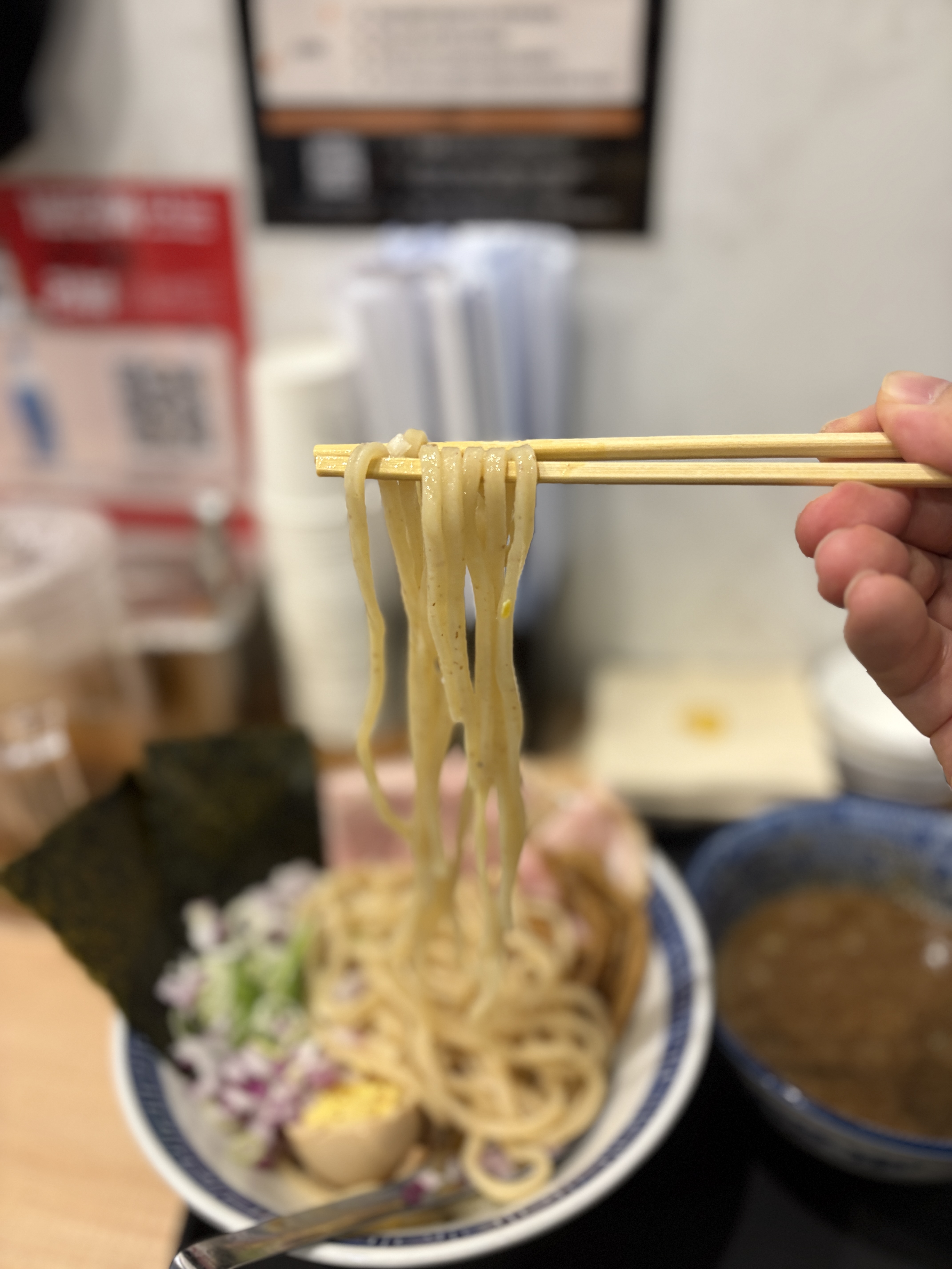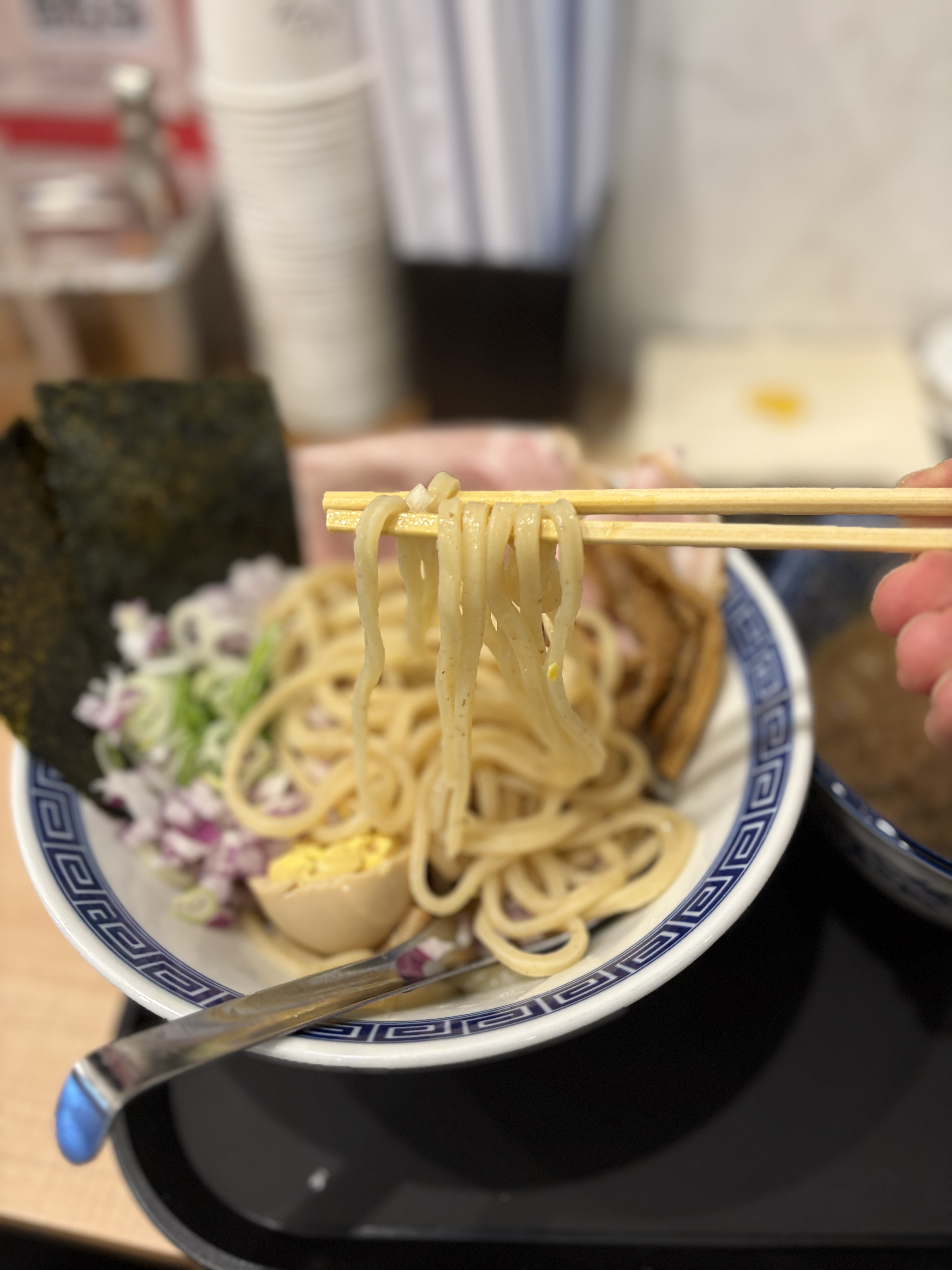 오 근데 이날은 면이 때깔부터 다릅니다. 츠케멘의 면은 익혀낸 뒤에 찬물에서 헹궈내면서 면을 당기듯이 씻어주는데요, 이 과정을 거치면서 면의 탄력이 더 좋아지고 필요없는 전분은 씻어집니다. 이날은 여사장님 혼자 서빙하셨는데, 힘드실텐데도 정성스럽게 준비해주신 것 같았습니다.
