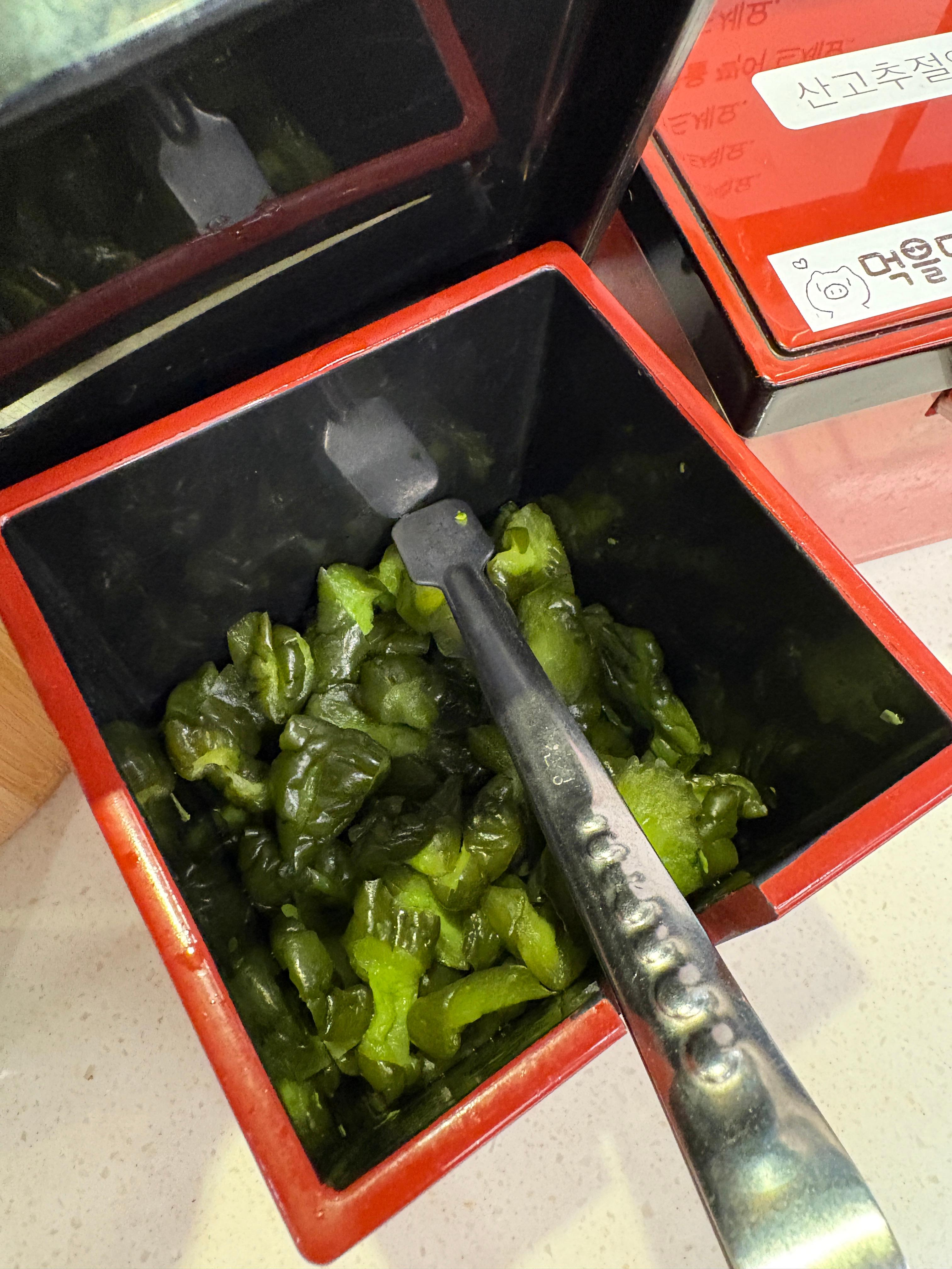 반찬으로는 오이절임과 고추절임이 있었는데 개인적으로 고추절임은 별로 선호하지 않아서 오이절임을 담았습니다. 일반적으로 일본식 음식을 하는 곳에서 볼수 있는 기성품이에요.