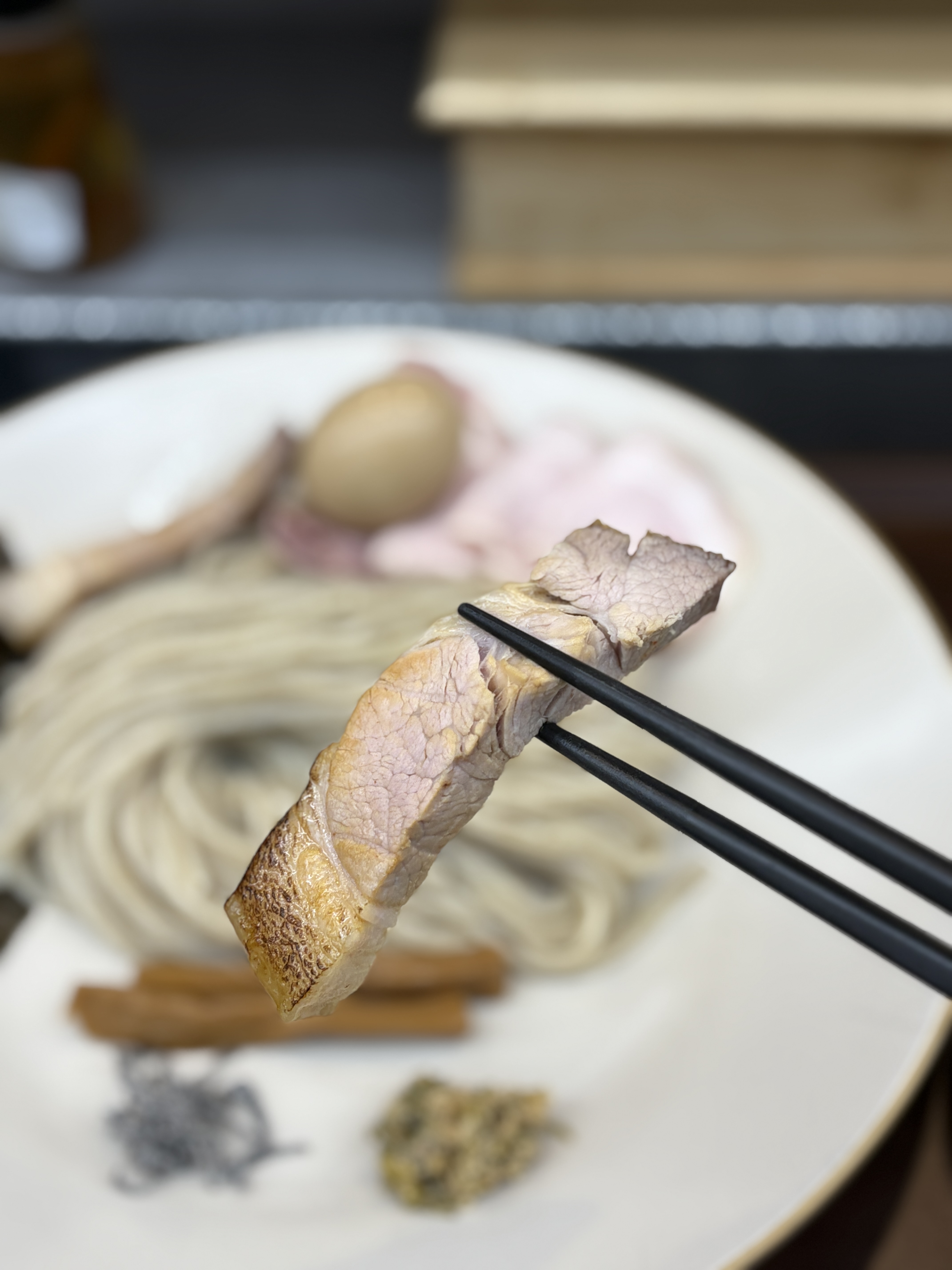츠케지루도 변화를 많이 주셨다고 하시는데요, 이전에는 교카이 츠케멘이었는데 어계향을 빼고 돼지와 닭 위주로 바꾸셨다고 하십니다. 음 그전 츠케지루도 개인적으로 나쁘지 않았는데.. 그리고 어분가루를 빼면 확실히 점도가 낮아지는 감은 있습니다. 내부에 고기는 충분히 여전히 들어있고, 맛도 좋은 츠케지루지만 기존 것이 제게는 좀 더 취향이었어요.