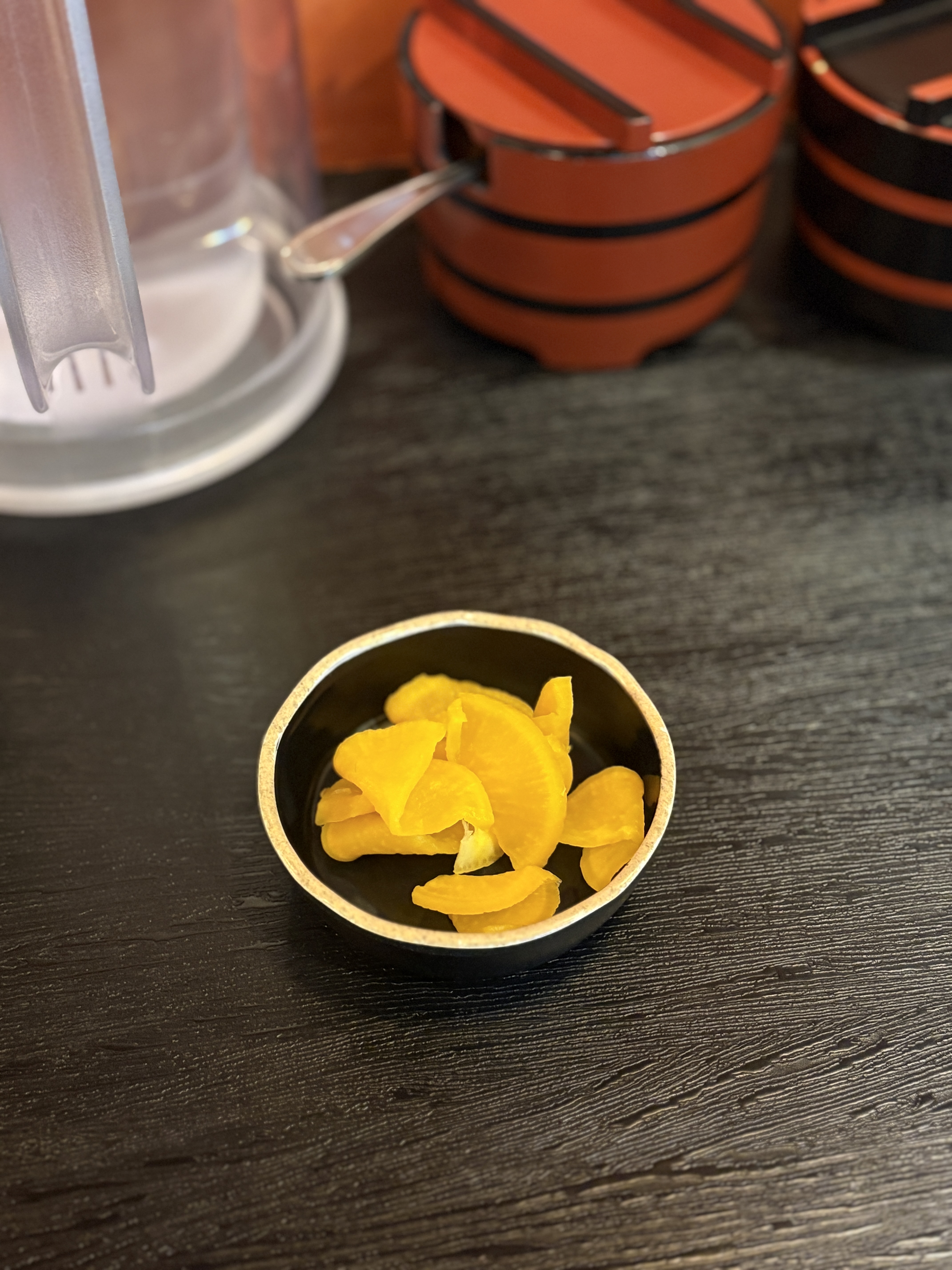 밑반찬은 깍두기와 단무지가 있어서 전 단무지를 선택했습니다.