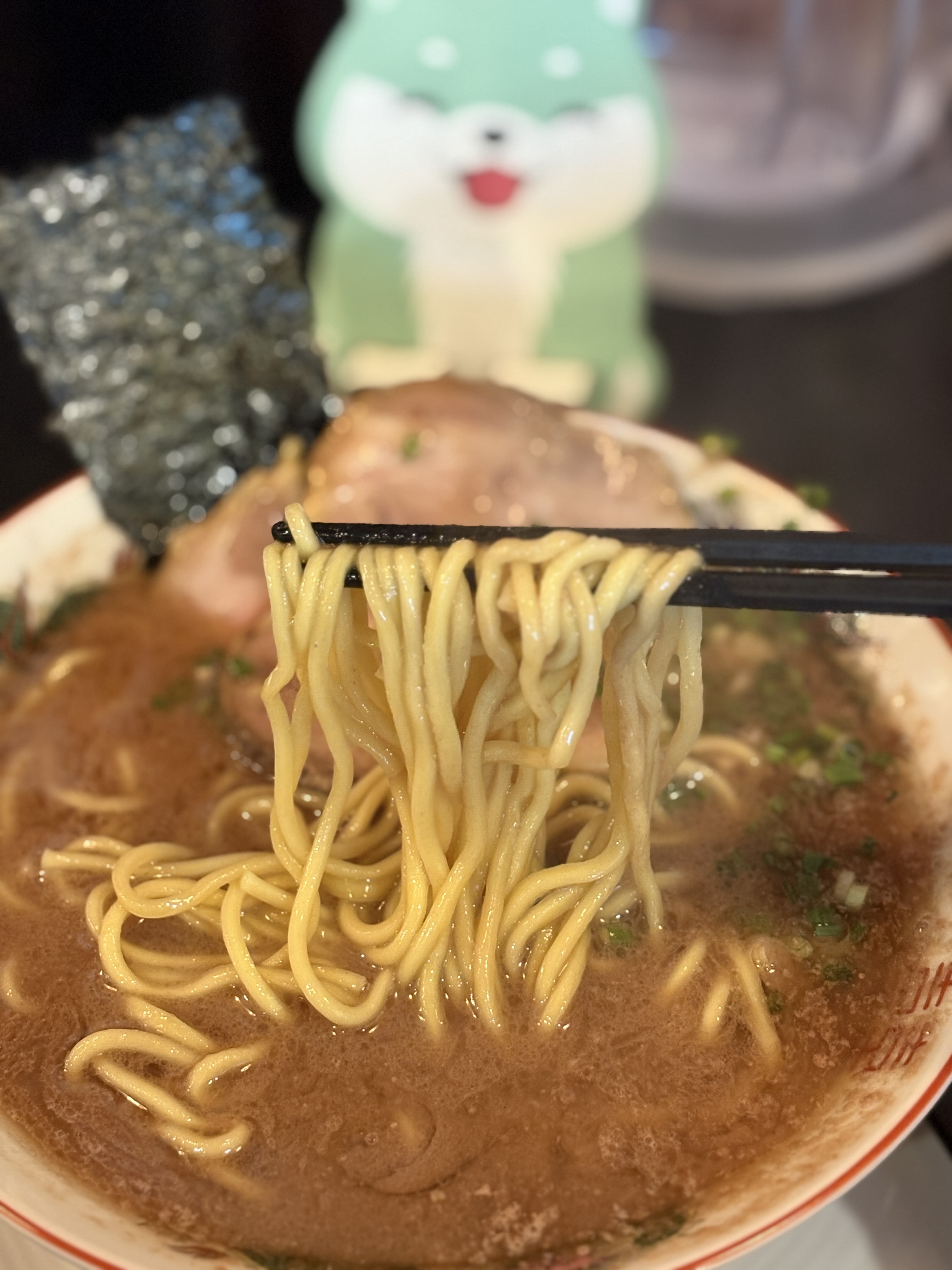 면은 하카타 라멘에 자주 쓰이는 호소멘이 아닌 중면에 가까운 면이었어요. 그래서 생각보다 면 삶기가 좀 더 삶아진 느낌이라 놀랐는데 의외로 스프랑 잘 어울렸습니다. 흔히 말하는 바리카타 면이 스프를 서서히 빨아들이면서 생기는 스프의 변화는 거의 없었다고 보면 되구요, 대신에 스프가 찰랑거리는 스프를 머금으면서 딸려올라오는 느낌에 더 초점을 맞추신 것 같습니다. (지금은 호소멘으로 변경 가능하다고 하십니다.)