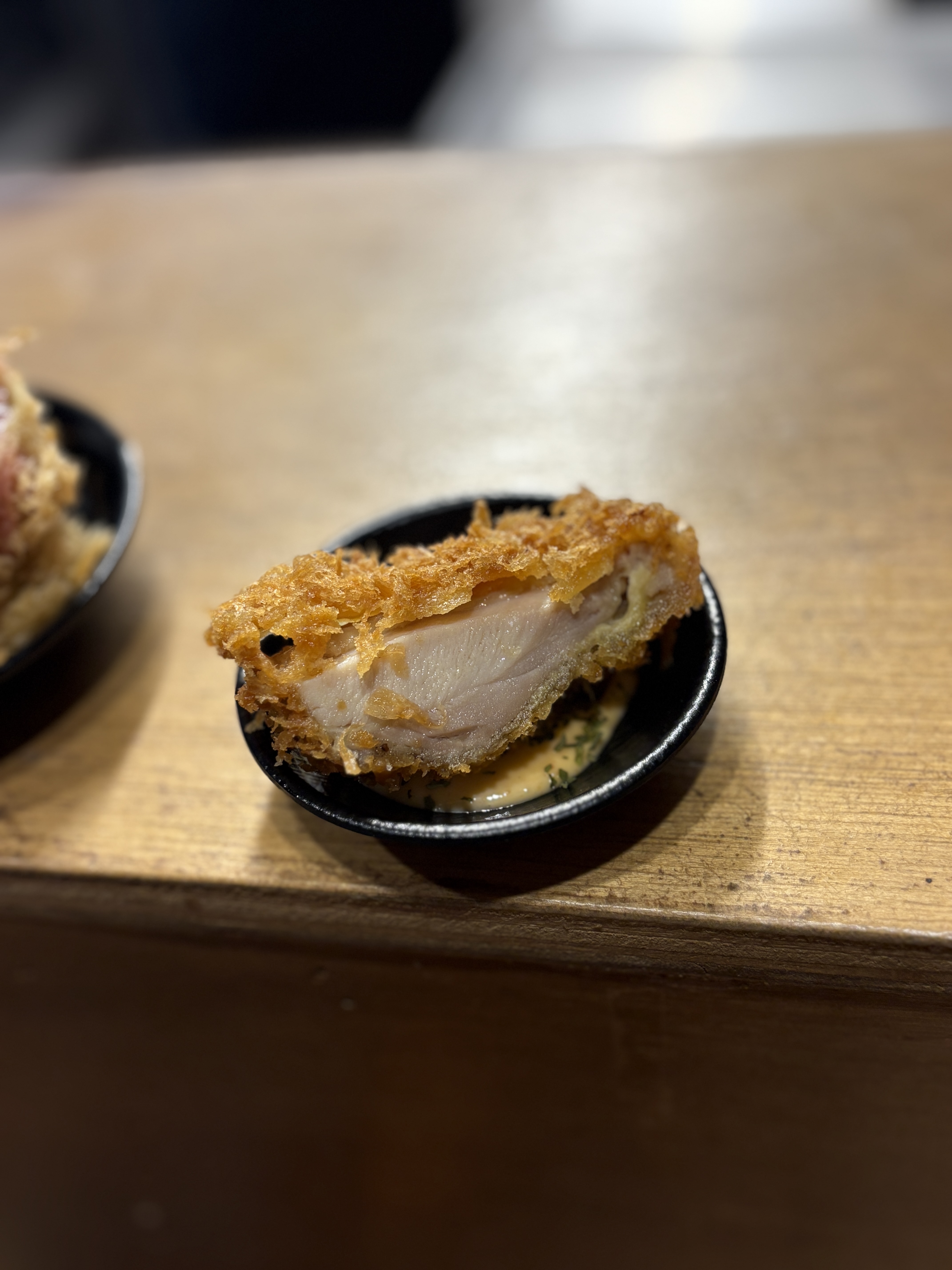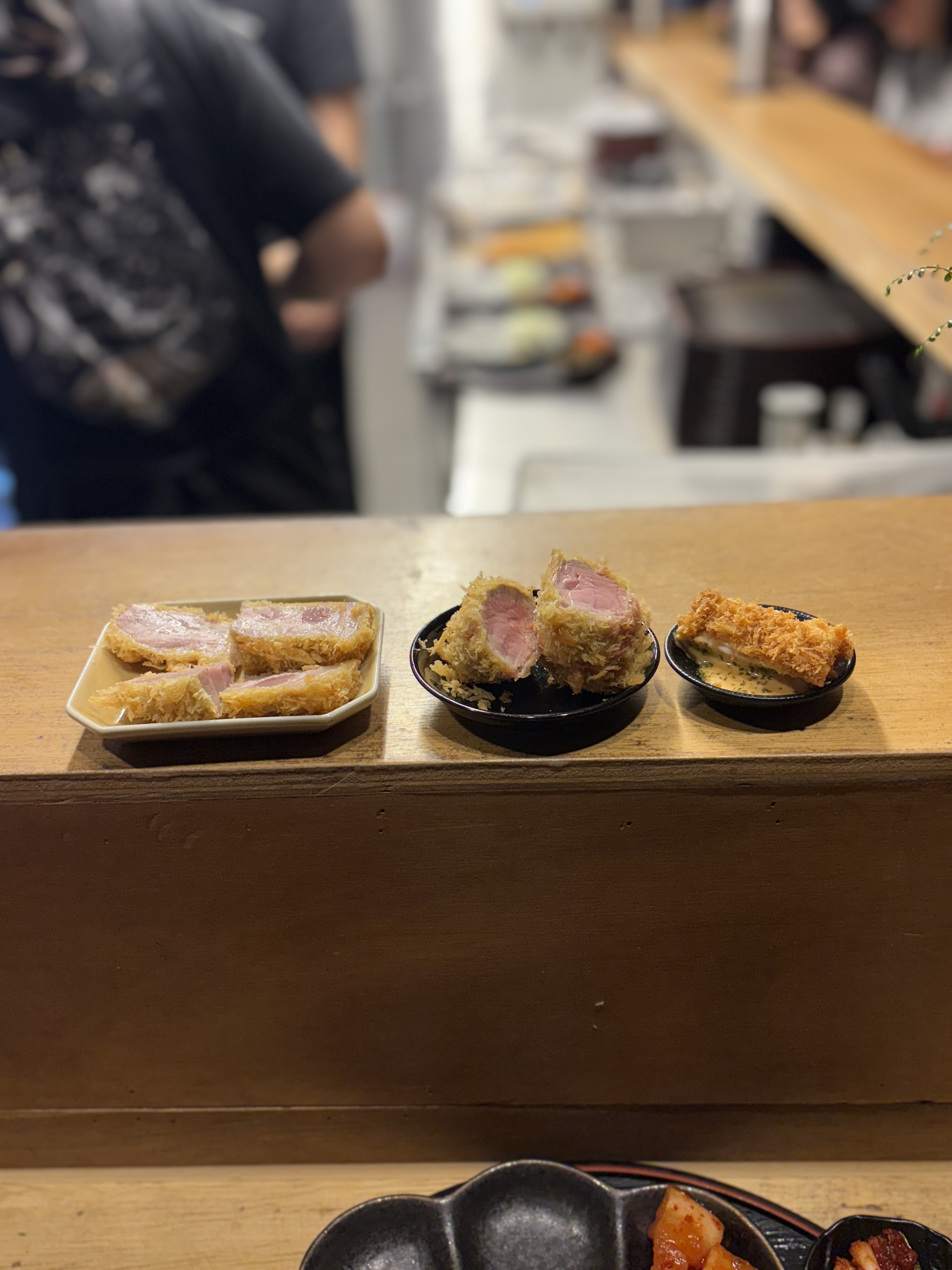 먹다보니 나온 주연급 조연 3형제. 좌측부터 버크셔 카타로스, 가운데는 히레카츠인 안심, 우측은 서비스로 맛보라고 주신 치킨까스입니다. 치킨은 브라질산 닭다리 부위를 사용하십니다. 국내산 중요하게 생각하시는 분들이 있는데 사실 닭 살코기는 브라질이 더 맛있다고 생각합니다. 특정 부위/특정 요리가 아니라 이런 튀김용으로는요.