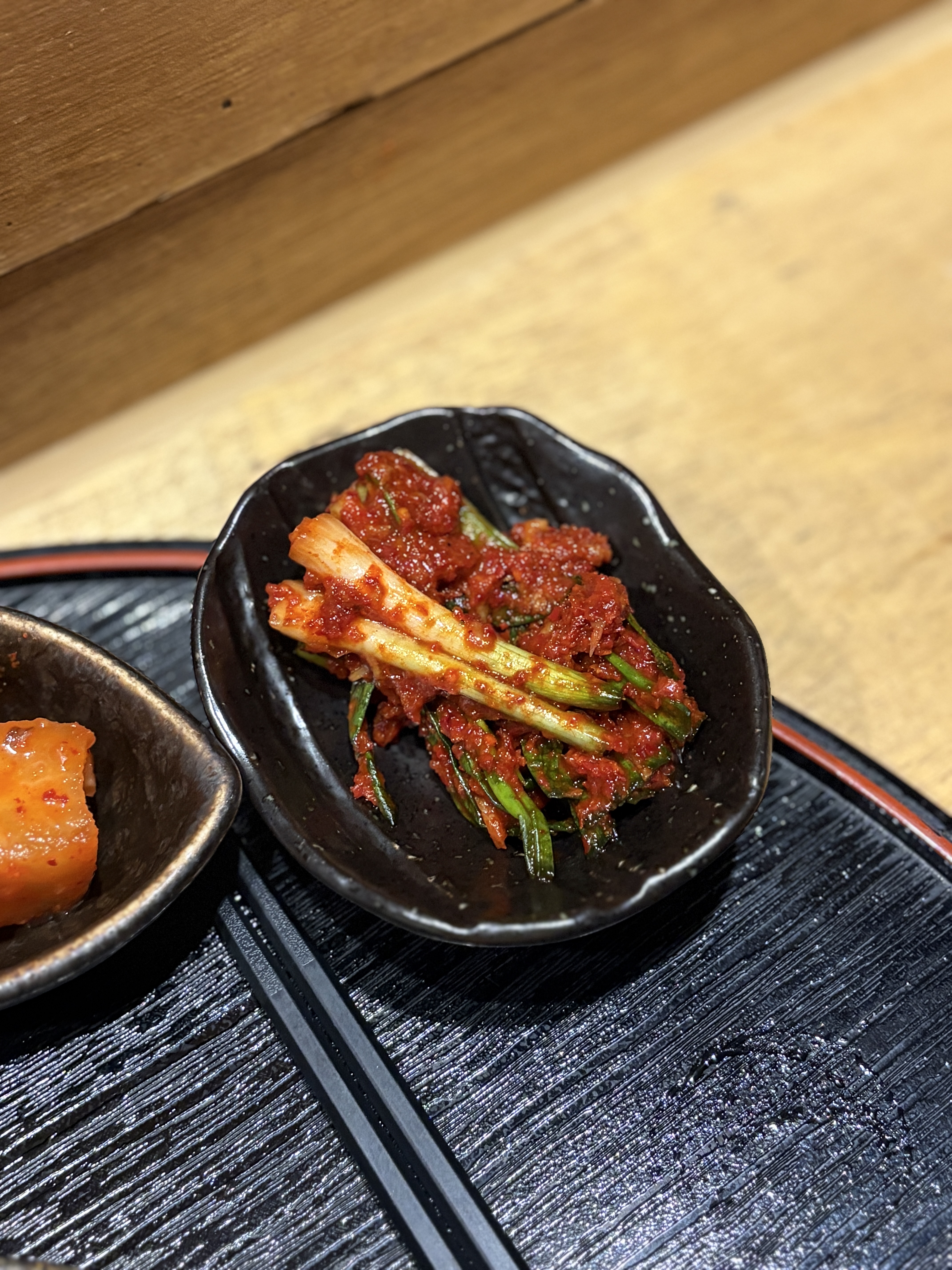훈타의 트레이드마크인 파김치도 찍어봅니다. 누가 처음 생각해낸건지 일식 돈카츠에 파김치를 반찬으로 내줄 생각한 사람은 상줘야합니다 진짜로.. 이게 언뜻 안어울린다 싶을 수 있는데 막상 돈카츠를 두점 정도 먹고 파김치를 곁들여서 먹어보면 기름 많은 돈카츠랑 환상의 궁합이란걸 알 수 있습니다.