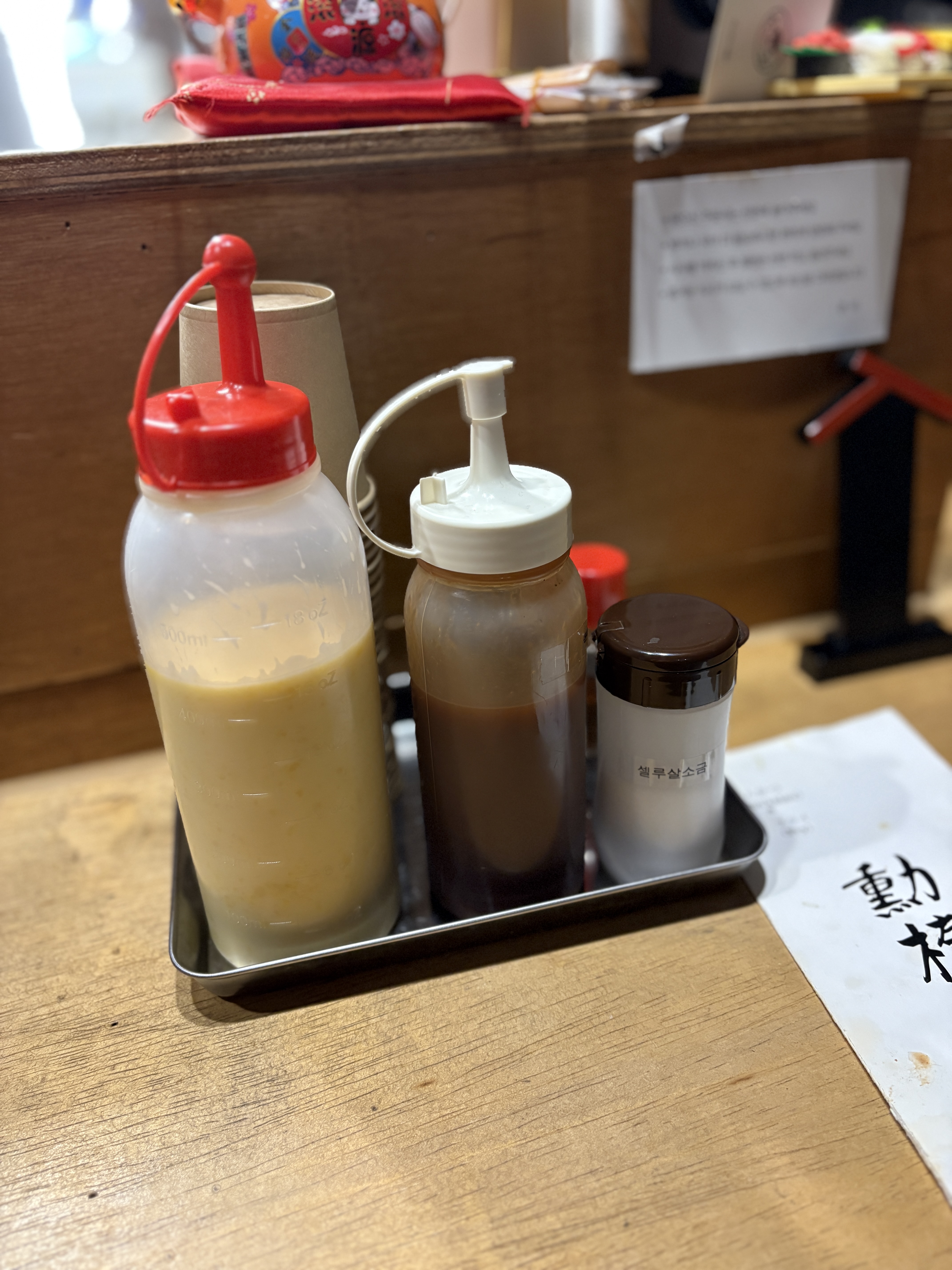 주문 후에 주문서를 건내주시면 조리가 시작되는데요, 저는 서울페이로해서.. 구두로 전달을... ㅎㅎ 밥과 국은 무료 추가가 가능합니다.