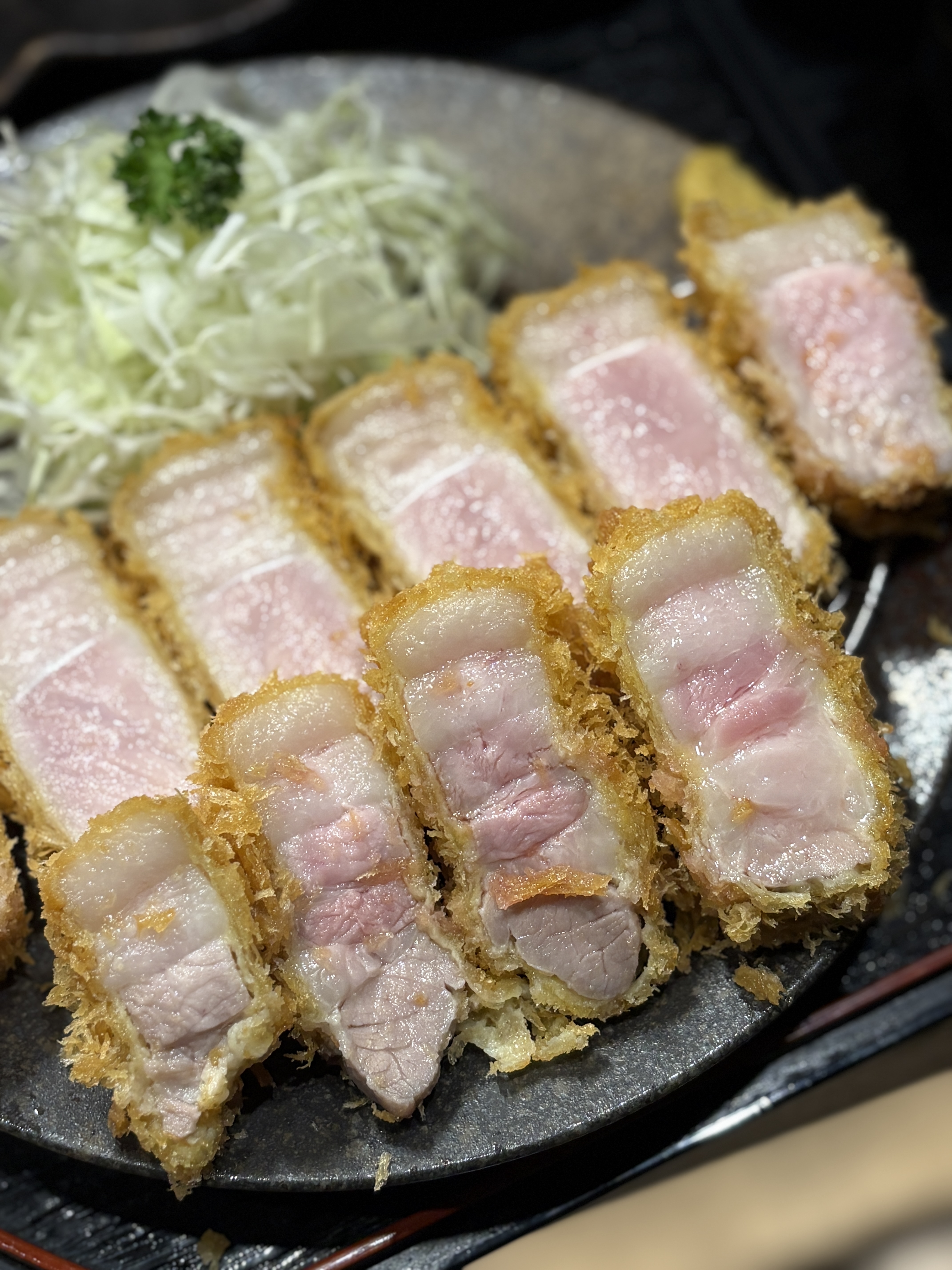 튀김옷도 완벽하구요 조리온도는 저온보다는 고온에 좀 더 가까운 느낌입니다. 이런 씹는맛이 있는 돈카츠의 경우에는 안심과 다르게 전 고온에서 조리하는 편이 더 좋다고 생각합니다. 터프한 맛이 더 좋아요.