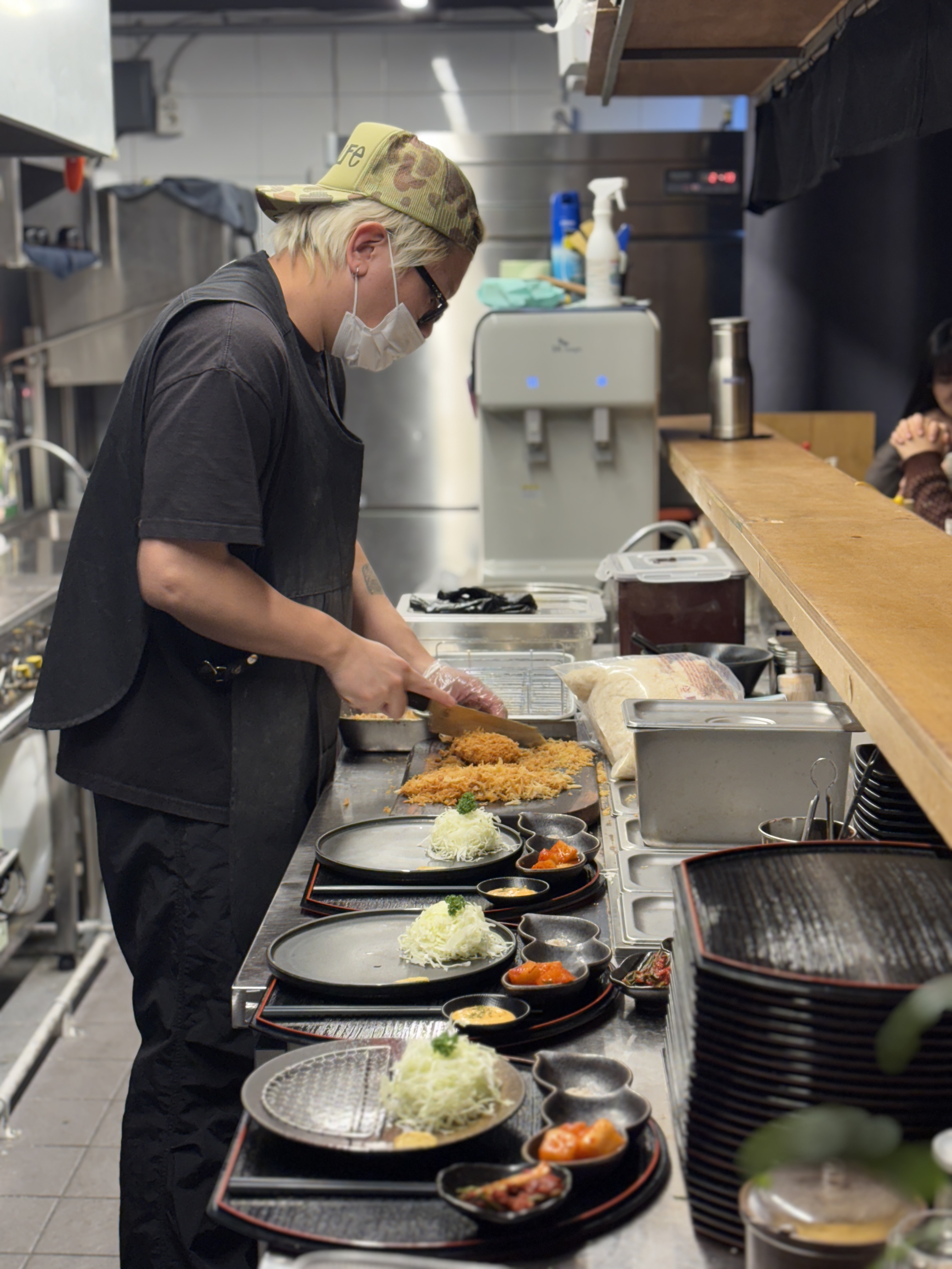 좌석은 모두 바 좌석으로 되어있습니다. 바로 앞에서 돈카츠를 만드시고 튀기는 과정을 볼 수 있는 장점이 있구요, 플레이팅 하시는 모습도 다 직관이 가능합니다. 준비해둔 고기에 튀김옷을 입히시는 과정을 찍어봤습니다. 사장님이 따로 요식업에 대한 경력이 있으셨던건 아니라고 하시는데 정말 대단하십니다. 가게가 돌아가는 시스템 자체가 굉장히 고민을 많이 하시고 동선을 짜두신것 같구요, 요식업 경험이 없는데도 이렇게 구성을 해서 준비하셨다는게 대단하다고 느껴졌습니다. 돈카츠에 관해서는 사장님이 일선에서 다 작업하십니다.