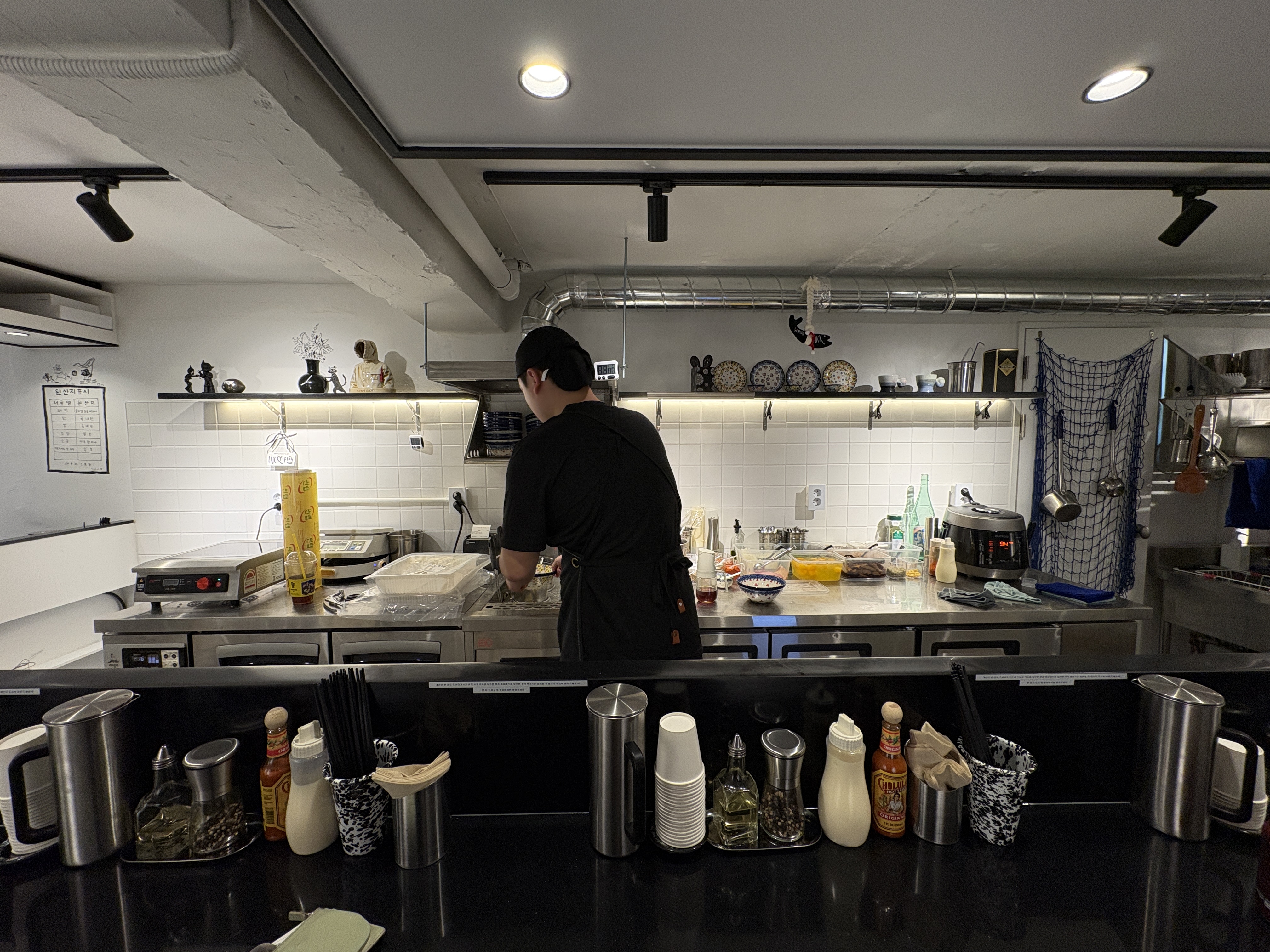 내부는 전석 바 테이블로 십여명이 앉을 수 있도록 구성되어있습니다. 아부라소바가 나오는 속도도 빠르고 먹는 속도도 빠른편에 속하기 때문에 회전률도 좋습니다.
