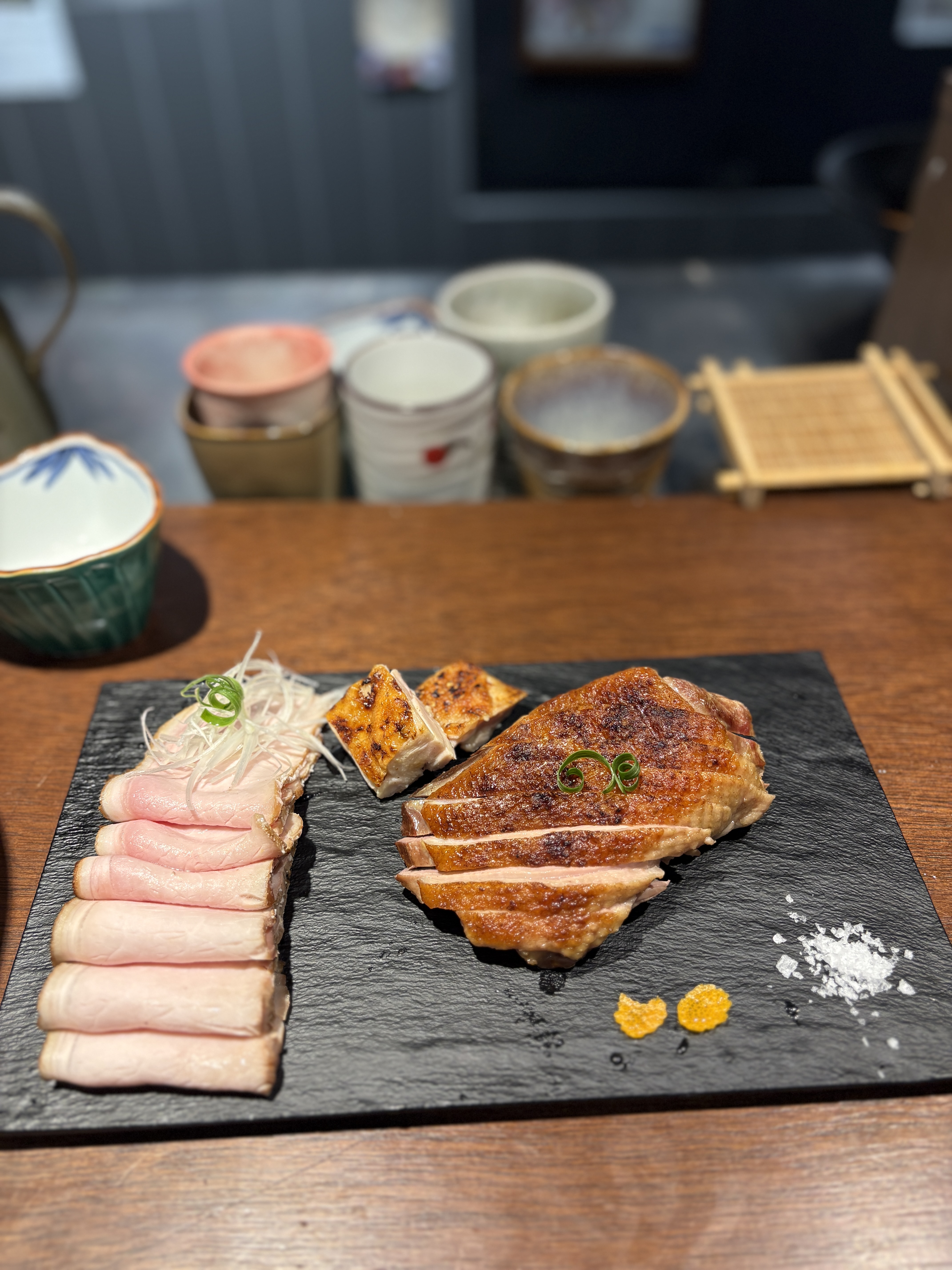자주 가는 곳인만큼 저 나름대로 즐기는 방법을 연구하게 되었는데요, 오리를 프렌치 방식으로 굽고 스미비 향까지 입히는 모습을 보고 통으로 스테이크로 받아볼 수 없을까에서 시작한 오꼬노미가 인친분들도 경험해보시고 호평을 해주셔서 시코우에 첫 턴에 들어가서 오리스테이크를 먹는게 약간 챌린지 같이 되었다니..ㅋㅋ 묘한 기분이 듭니다.