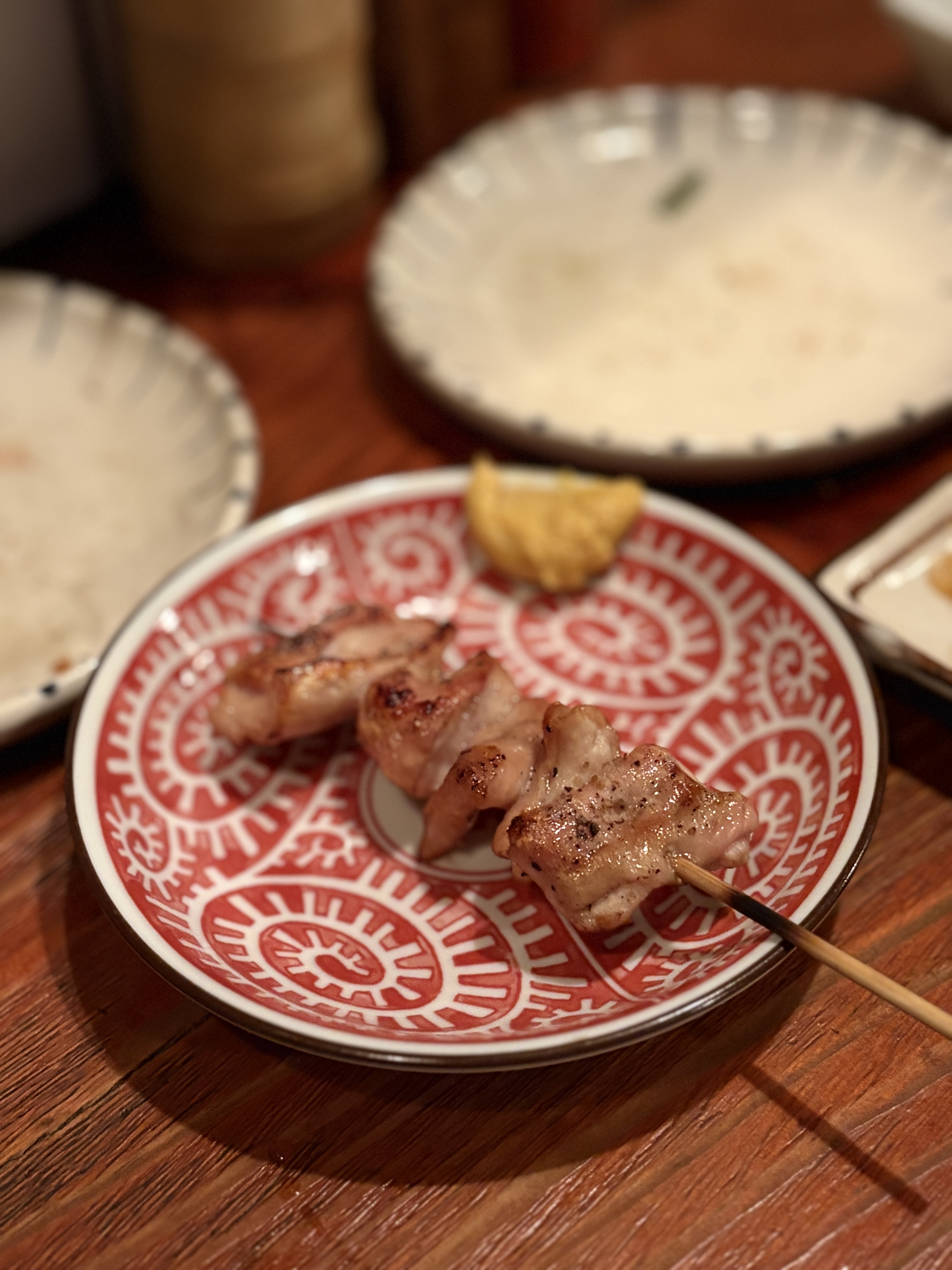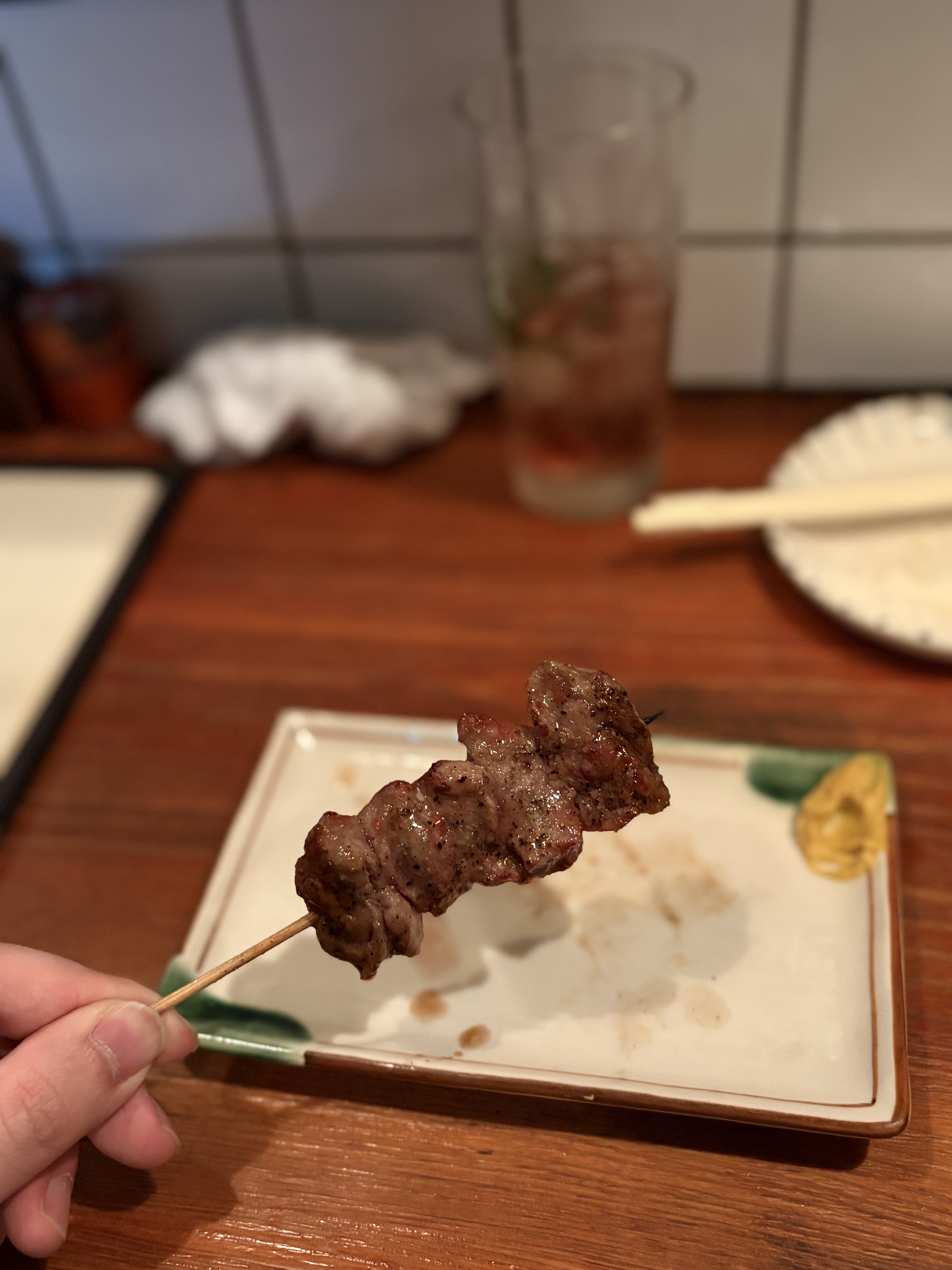 그날 그날 준비된 재료들을 이렇게 명패를 통해서 안내해주십니다. 준비된 재료들 중에서 솔드아웃이되면 명패를 다른 글귀가 적힌 명패로 바꿔서 걸게 됩니다. 기본적으로 메뉴 이름들이 한국인이 많이 들어보지 못한 특수부위들이어서 처음에는 좀 주문하는데 힘들 수 있는데요, 그럴 땐 그냥 추천 메뉴를 부탁하는 방법도 있습니다. 배가 부른지 고픈지, 그리고 못먹는 것이 있는지 (이를테면 내장, 피냄새 많이 나는 것, 간 등) 를 번역기를 통해서라도 알려주시면 최대한 맞춰서 서브해주십니다. 여성분들 테이블은 항상 샐러드인 사라다를 같이 주문해서 드시더라구요. 그 외에도 기본적으로 이자카야에서 파는 메뉴인 니꼬미 종류라던지, 부타 가쿠니라던지 메뉴가 준비되어있기도 해서, 궁금하시면 가능한 한정 메뉴가 있는지 여쭤보는 것도 좋습니다. 저흰 보통 야키톤으로 배를 많이 채우지만요 ㅎㅎ