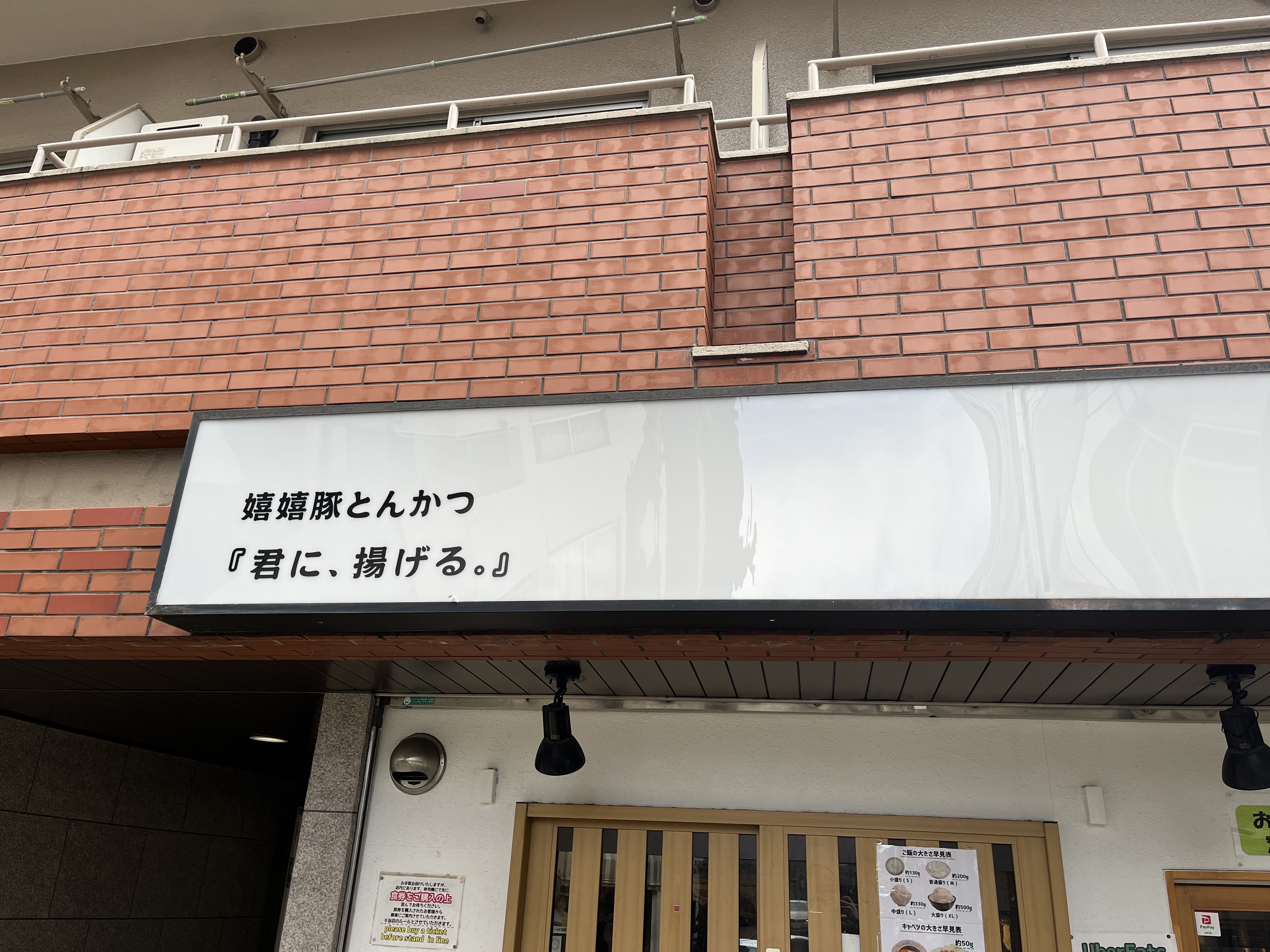 저는 평소에 흰쌀밥과 돈카츠를 같이 먹는 것을 좋아하고 (많이) 양배추도 좋아하기에 기계적으로 둘다 오오모리로 주문을 했는데, 나중에 이 설명판을 보니 이게 도저히 사람이 먹을 양이 아닌 것 같았습니다. 양배추는 그렇다치더라도 (배부르지만 칼로리가 없다는 가정하에), 밥이 500g이라면 우리가 보통 마트에서 사먹는 큰 햇반공기가 200g이니 그걸 2개 반을 먹는다는 이야기인데.. 이걸 머릿속에서 계산하고 시뮬레이션해보니 도저히 다 먹을 용기가 나지 않았습니다.