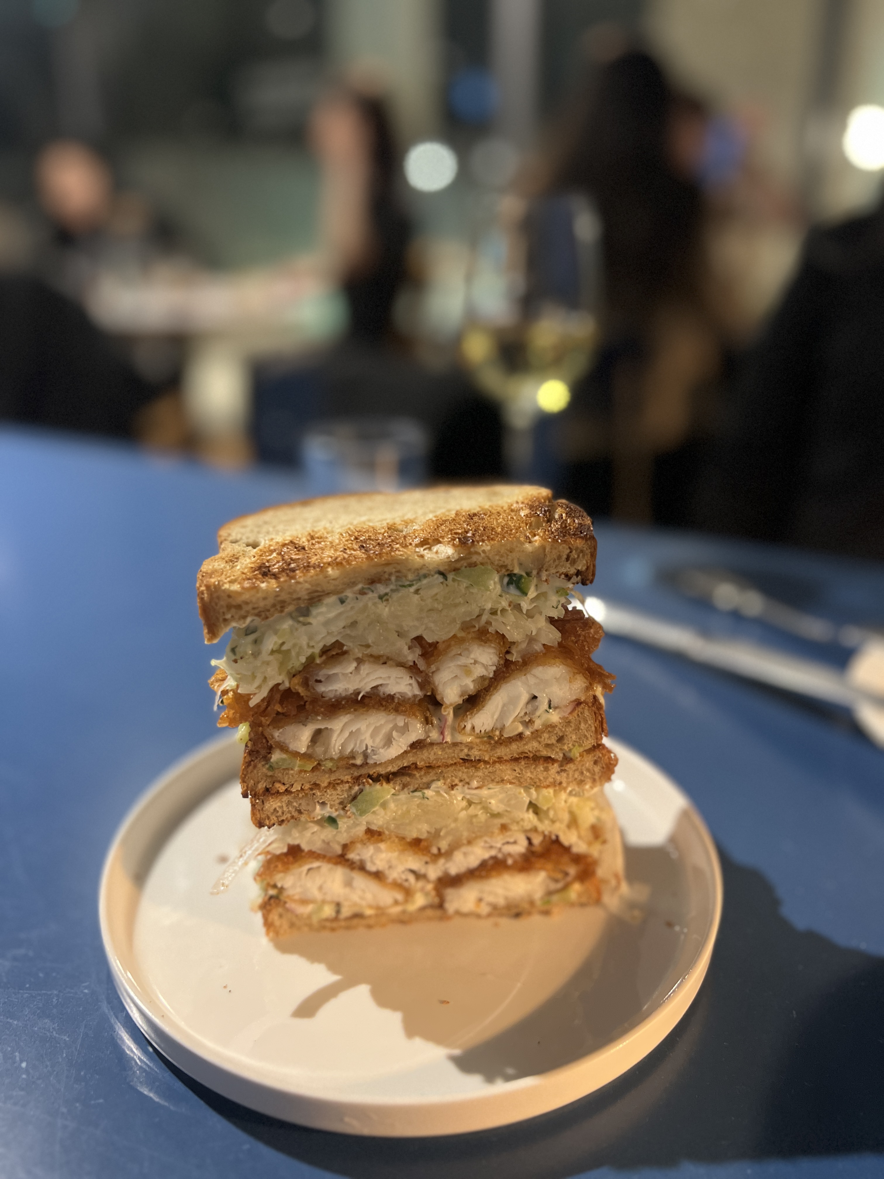 다음 메뉴는 프라이드 피쉬 샌드위치. 잘 구워진 식빵 사이에 절인 양파와 양배추를 버무려 타르타르 소스와 함께 발랐고, 달고기를 튀겨서 같이 넣었습니다. 딜을 넣어서 향을 더했습니다. 첫 입에는 어렷을 적 어머니가 해주시던 참치샐러드 샌드위치가 생각나는 맛이었고, 타르타르 소스와 달고기 튀김이 잘 어울렸습니다. 다만 소스의 맛이 강해서 달고기보다 저렴한 생선을 사용했어도 괜찮았을 것 같다는 느낌..? 전체적으로 맛은 합격점이었고, 다른 샌드위치들도 궁금해졌습니다.