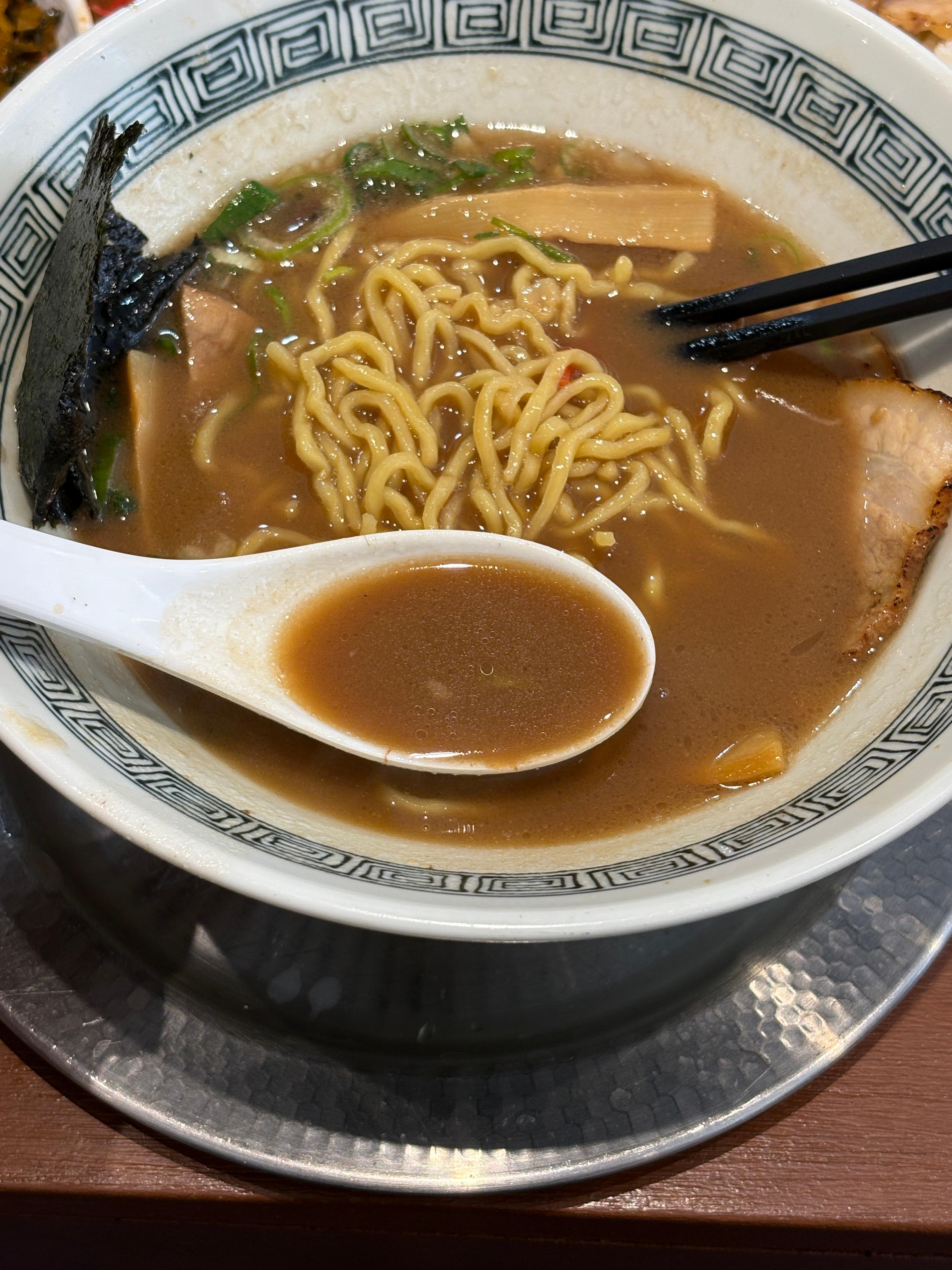맛스구의 최대 장점인 아주 두텁고 진한 육수입니다. 염도를 짜게로 한 것도 있지만 기본적으로 이런 정도의 깊은 맛이 나는 라멘 국물을 좋아하는데요, 그것도 이렇게 집에서 쉽게 갈 수 있는 거리에 있다니 너무나도 행복한 순간이었습니다. 돼지 잡내는 전혀 없으면서도 아주 오랜 시간 고아낸 깊은 육수 맛에 쇼유의 맛이 치고 들어옵니다. 왜 이에케 라멘 이야기가 나오는지 알겠네요. 동네가 동네이다보니 기본적인 세팅은 염도를 좀 낮게 해두시고, 매니아들은 염도 조절을 해서 먹을 수 있게 배려를 해주신 것 같습니다.