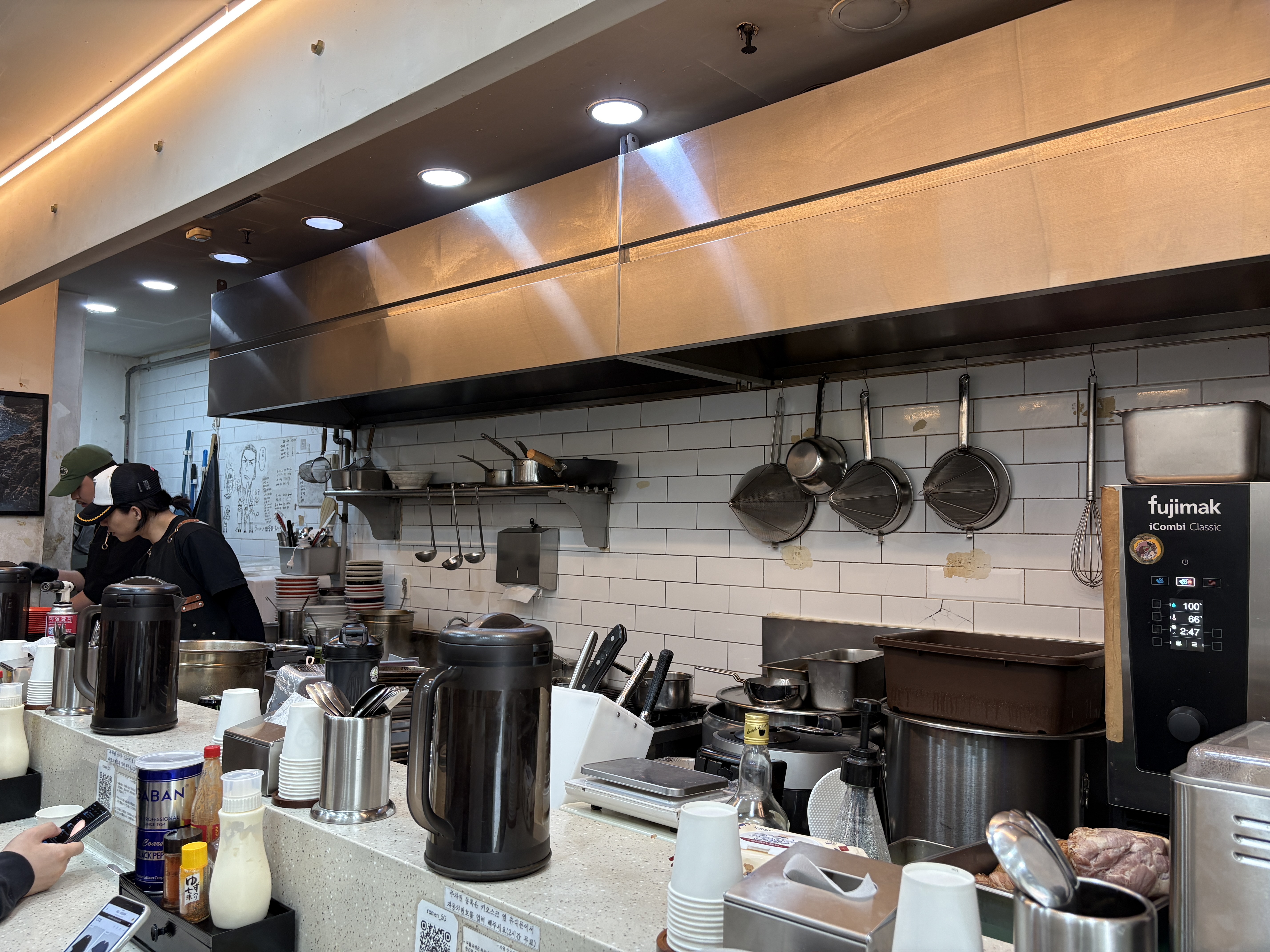 대부분의 좌석은 바테이블로 구성이 되어있구요, 안쪽에 4인용 작은 테이블석이 마련되어 있습니다. 대충 대기번호 몇번까지가 첫번째 웨이브에 식사가 가능한지 가늠해보려고했는데요, 1인식사도 있고 2인 이상 식사도 있기에 대중은 없지만 저는 대기번호 7번으로 이날 방문했고 감사하게도 마지막 자리에 착석하게 되었습니다. 앞에 계신분들이 대부분 1인 손님이셨고 2팀정도만 다인이었던걸로 보았을 때, 평소에도 적어도 7번 정도는 대기번호를 받아야지 오픈런에 성공했다고 볼 수 있습니다.